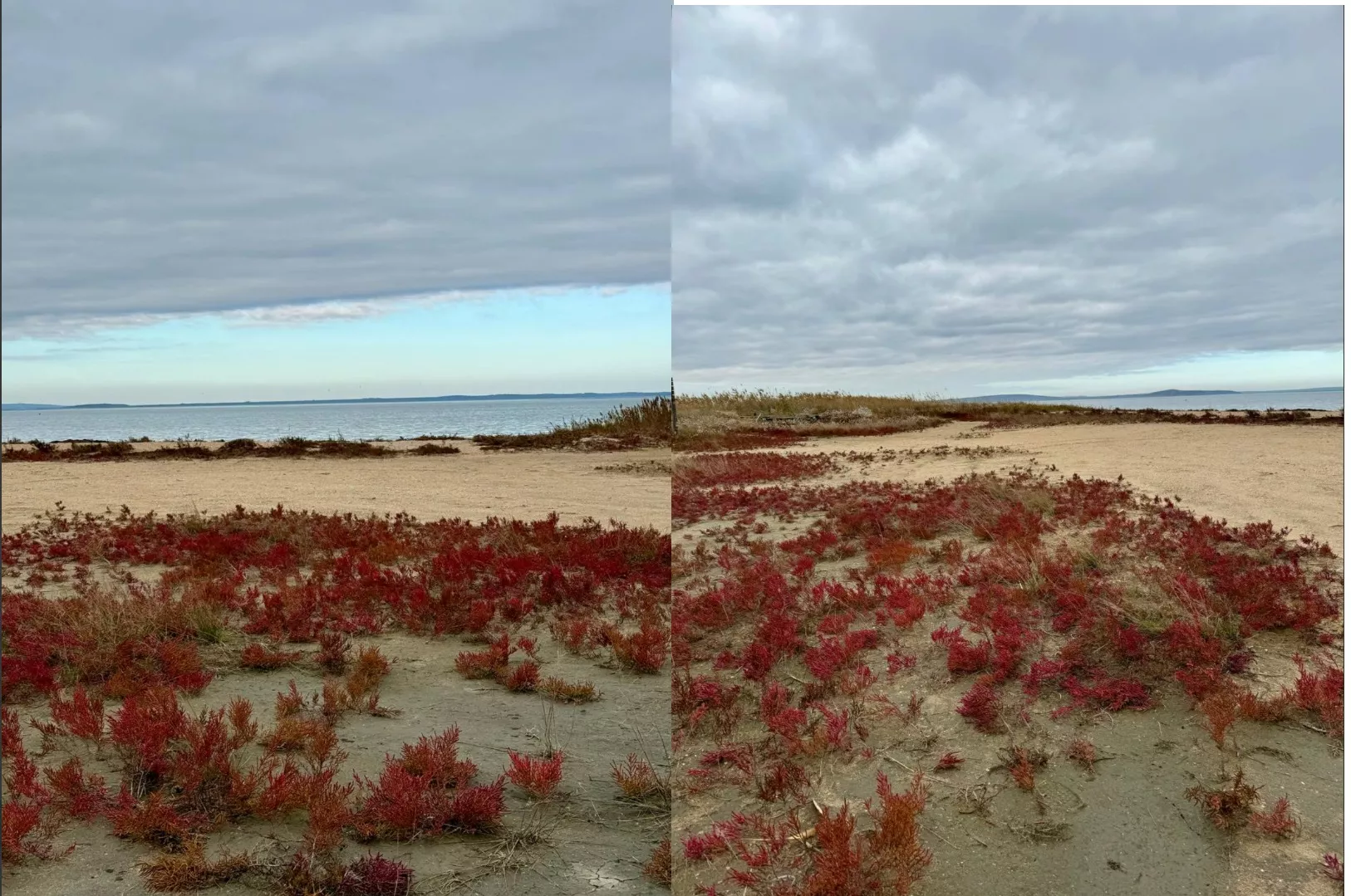 В соцсетях появились кадры растения солерос в районе Анапы. Как сообщают очевидцы, необычную красную траву они заметили на Бугазской косе.