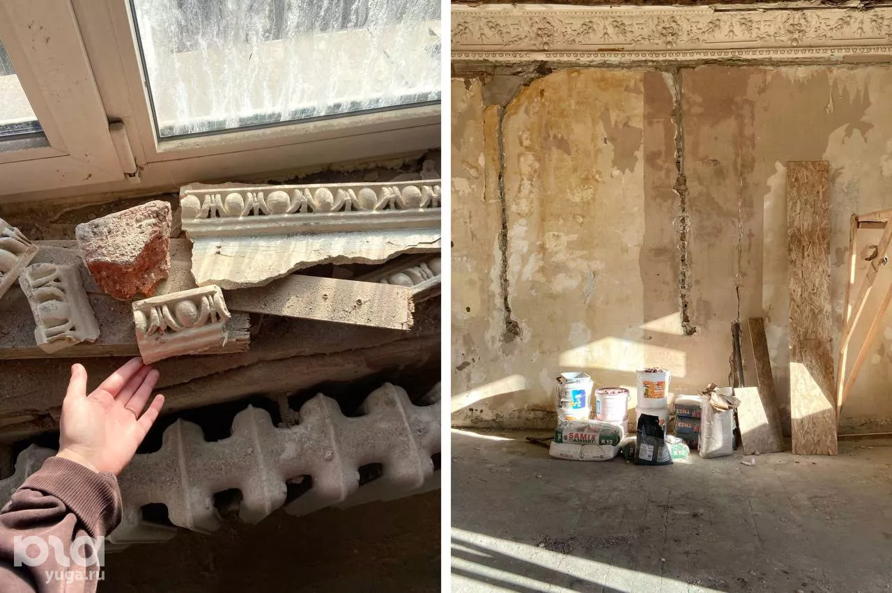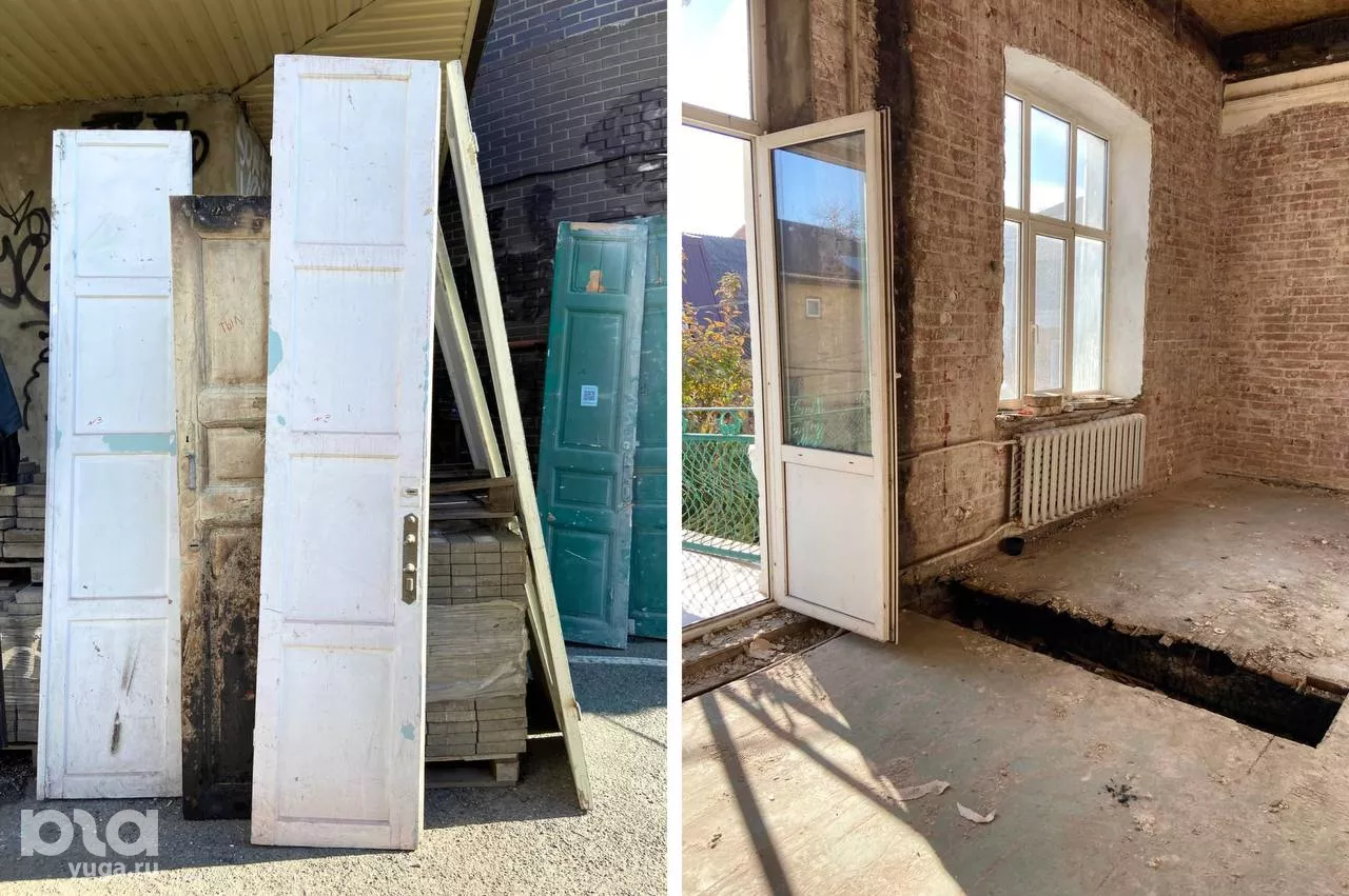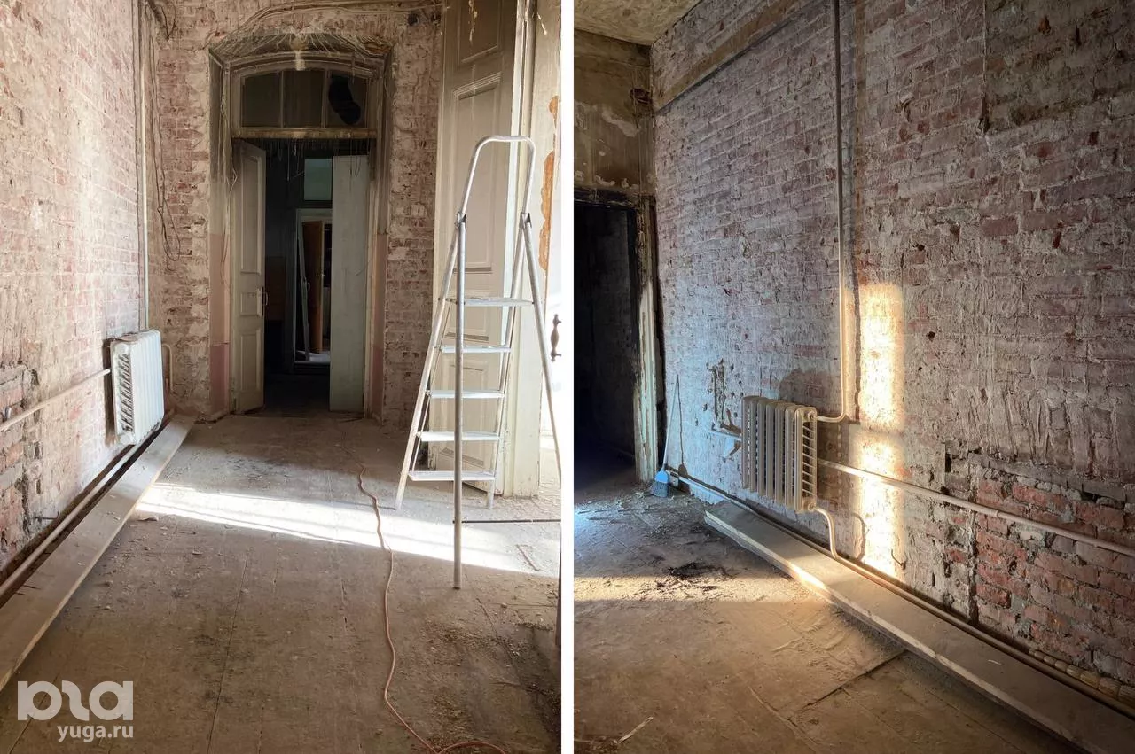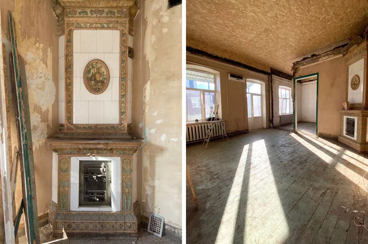 Телеграм-канал «Ботанки» также опубликовал фотографии помещения. На кадрах видно, что после пожара уцелела дореволюционная изразцовая печь. При этом сохранился лишь один участок лепнины. Деревянные двери отреставрирует проект «Том Сойер Фест».
