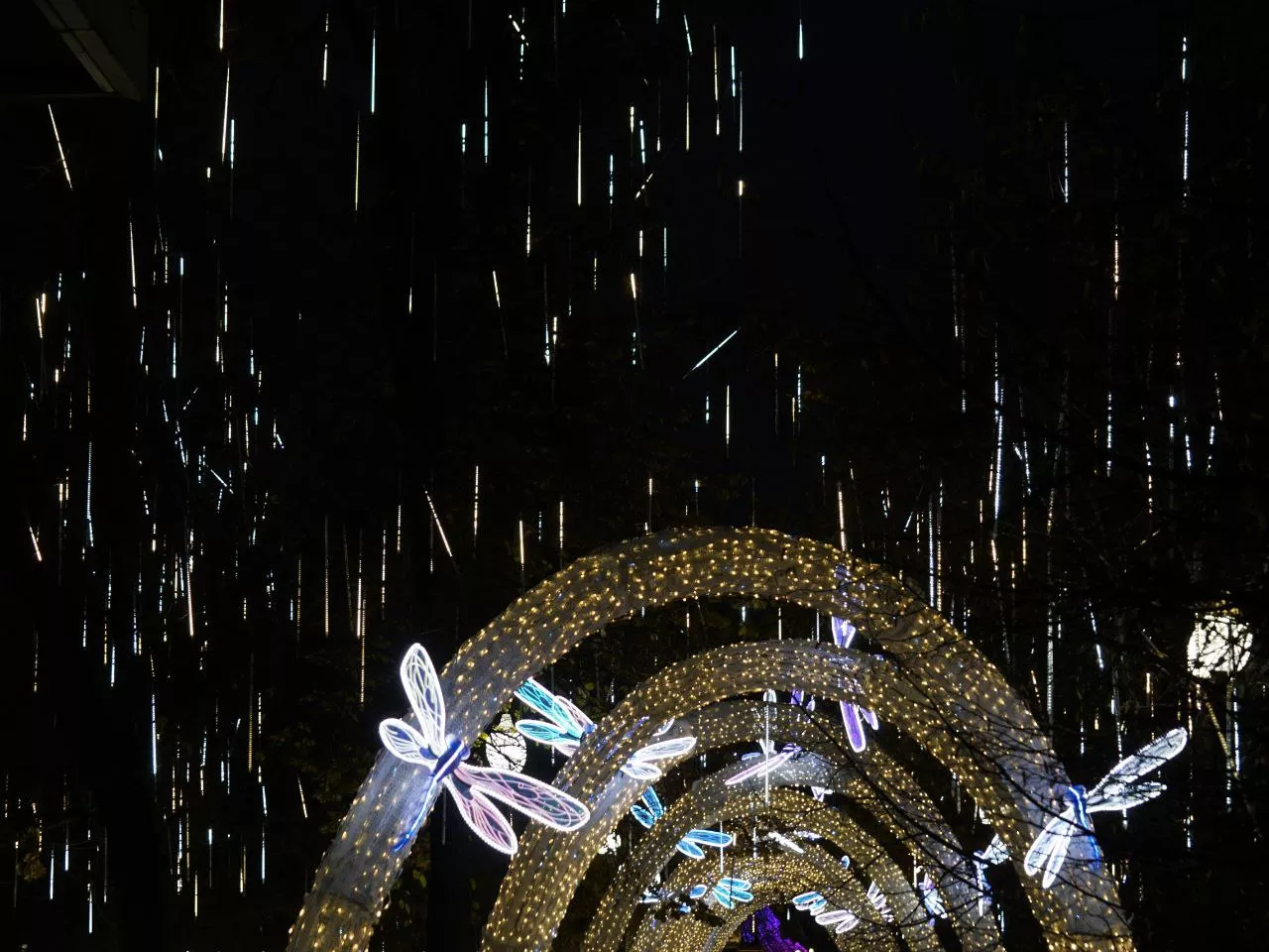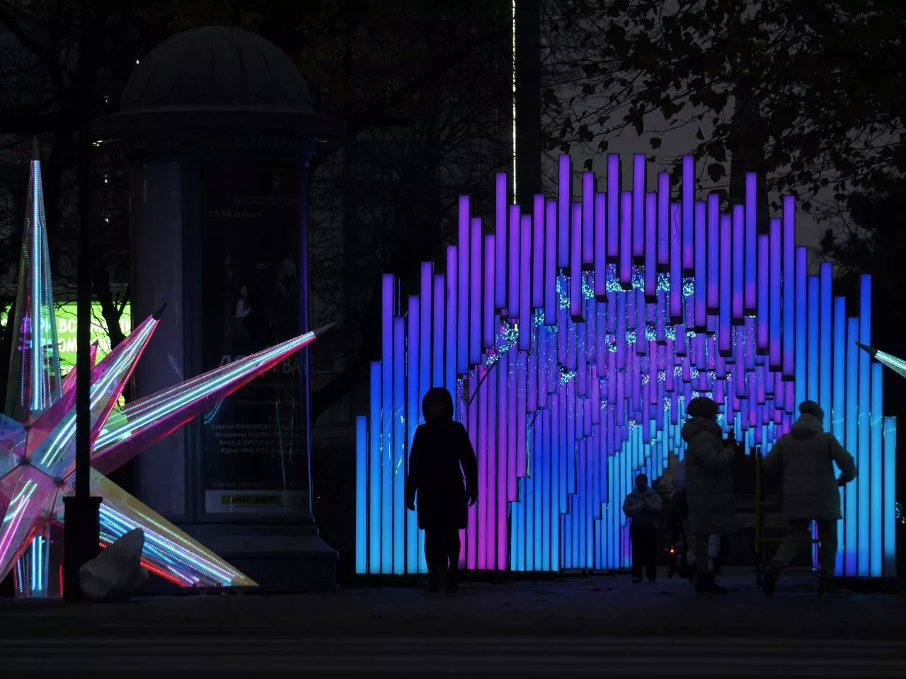 На фотографиях видны светящиеся арки, звезды, фигурки животных (бабочки и медведи), лотосы, переливающиеся фонтанчики и многое другое.
