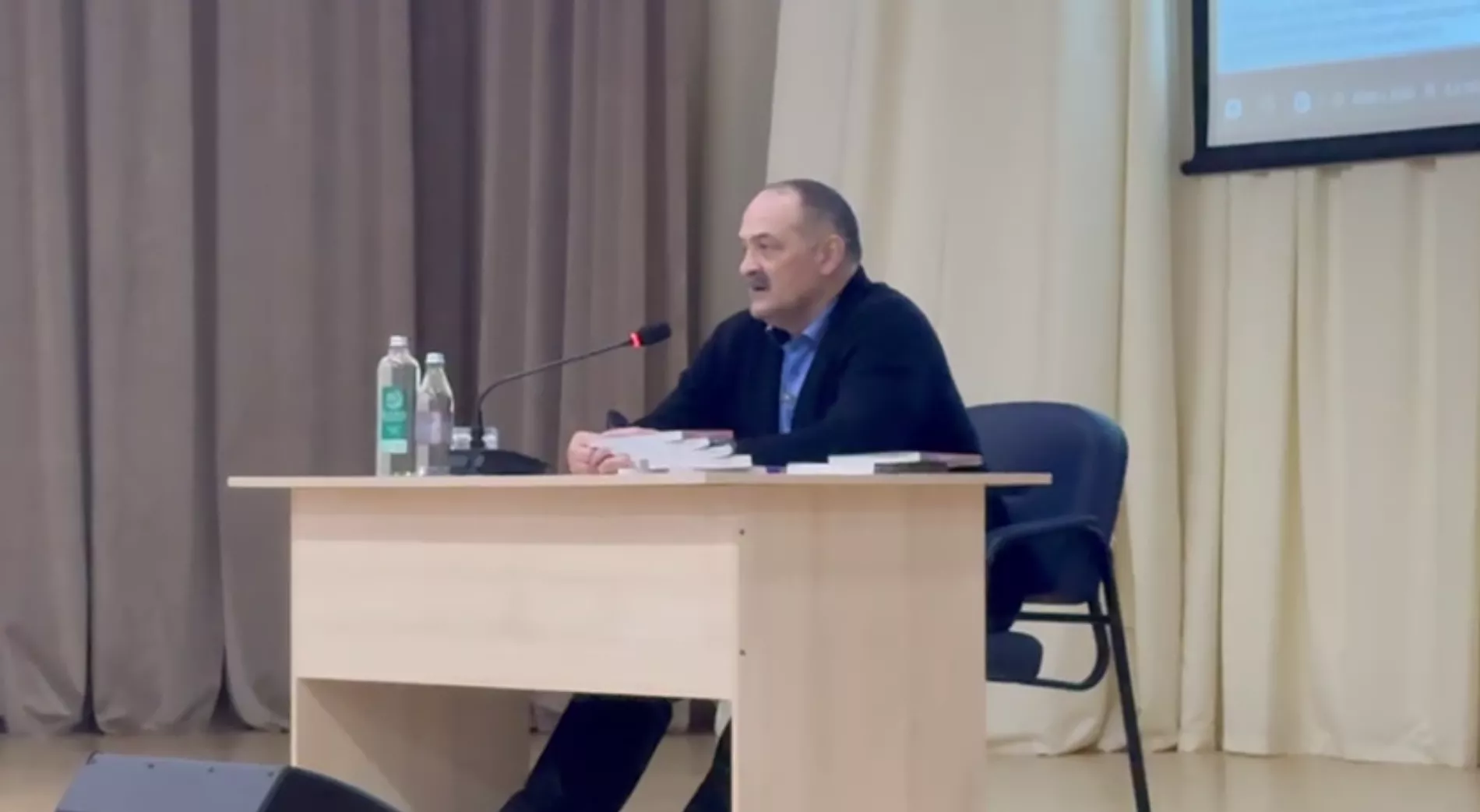 Сергей Меликов выступил в школе Махачкалы с рассуждениями о неизбежности СВО и своем участии в военной операции в Сирии