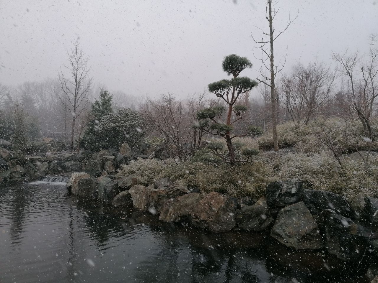 В самом Японском саду тоже было малолюдно. Как раз в тот момент в городе началась метель.