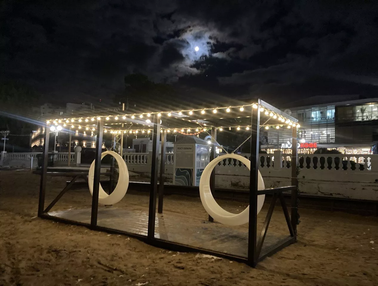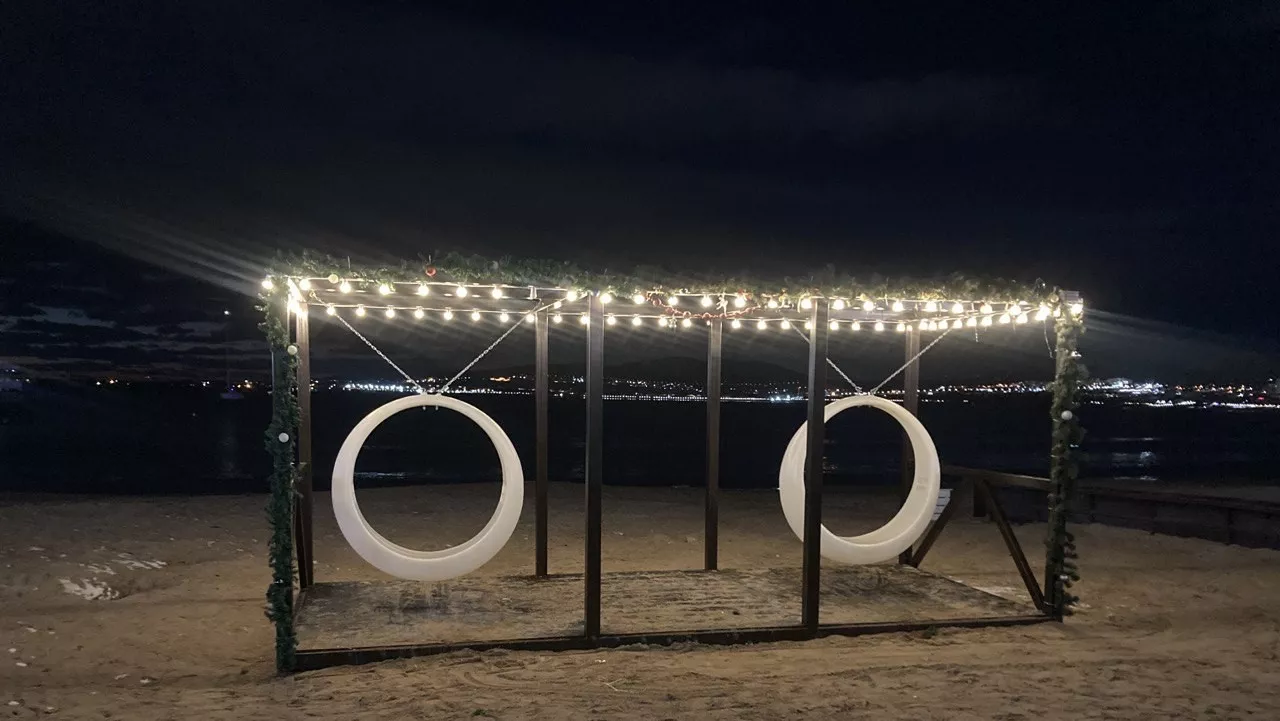Здесь же готовят к открытию Домик Деда Мороза. А на набережной появились новогодние гирлянды и светящиеся инсталляции.