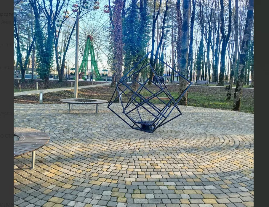 19 декабря пресс-служба парка «Юность» в Апшеронске сообщила, что на его территории появился новый арт-объект в виде нескольких контуров кубов. По замыслу создателей, он должен был стать символом единства и гармонии.