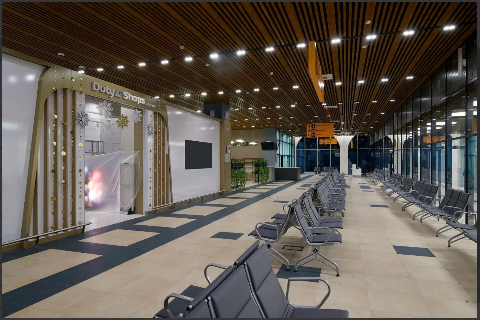 В двухэтажном здании нового аэровокзала разместили два телетрапа и 13 стоек регистрации.