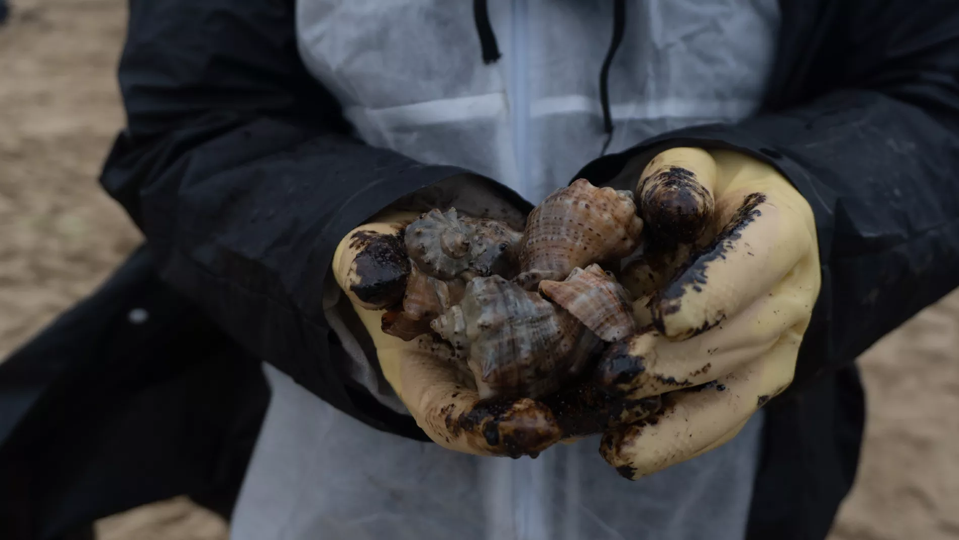 «Очевидно, что мазут опустился на дно, протравил весь бентос, и вместе со штормом на берег выбросило тысячи раковин», — рассказал эксперт.