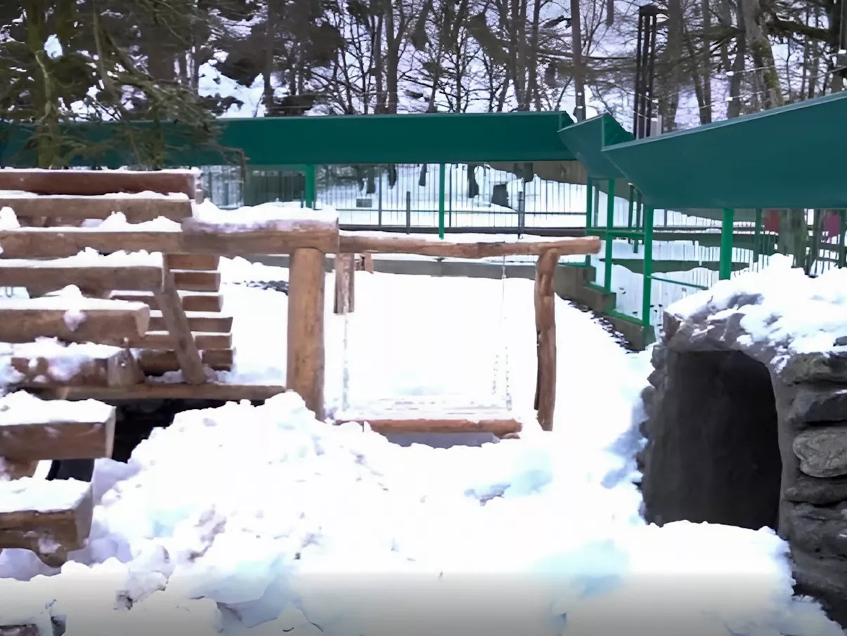 «Это сооружение с двойным ограждением, верхний край забора — с отрицательным уклоном. Смонтирована дополнительная мера безопасности — электроизгородь. Площадь вольера — более 300 метров, здесь оборудованы два запирающихся отсека для временного нахождения медведя при кормлении, техобслуживания и уборки вольера. На территории обустроили две берлоги, утепленные на зиму сеном, игровая горка, качели, есть даже ручей, в котором мишка может плескаться», — сообщил первый заместитель генерального директора Курорта Красная Поляна Сергей Глебов.