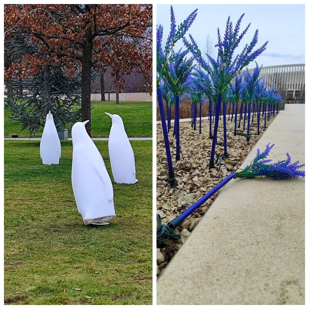 Очевидцы обнаружили сломанных пингвинов, вырванный шалфей, затоптанные газоны и растения.
