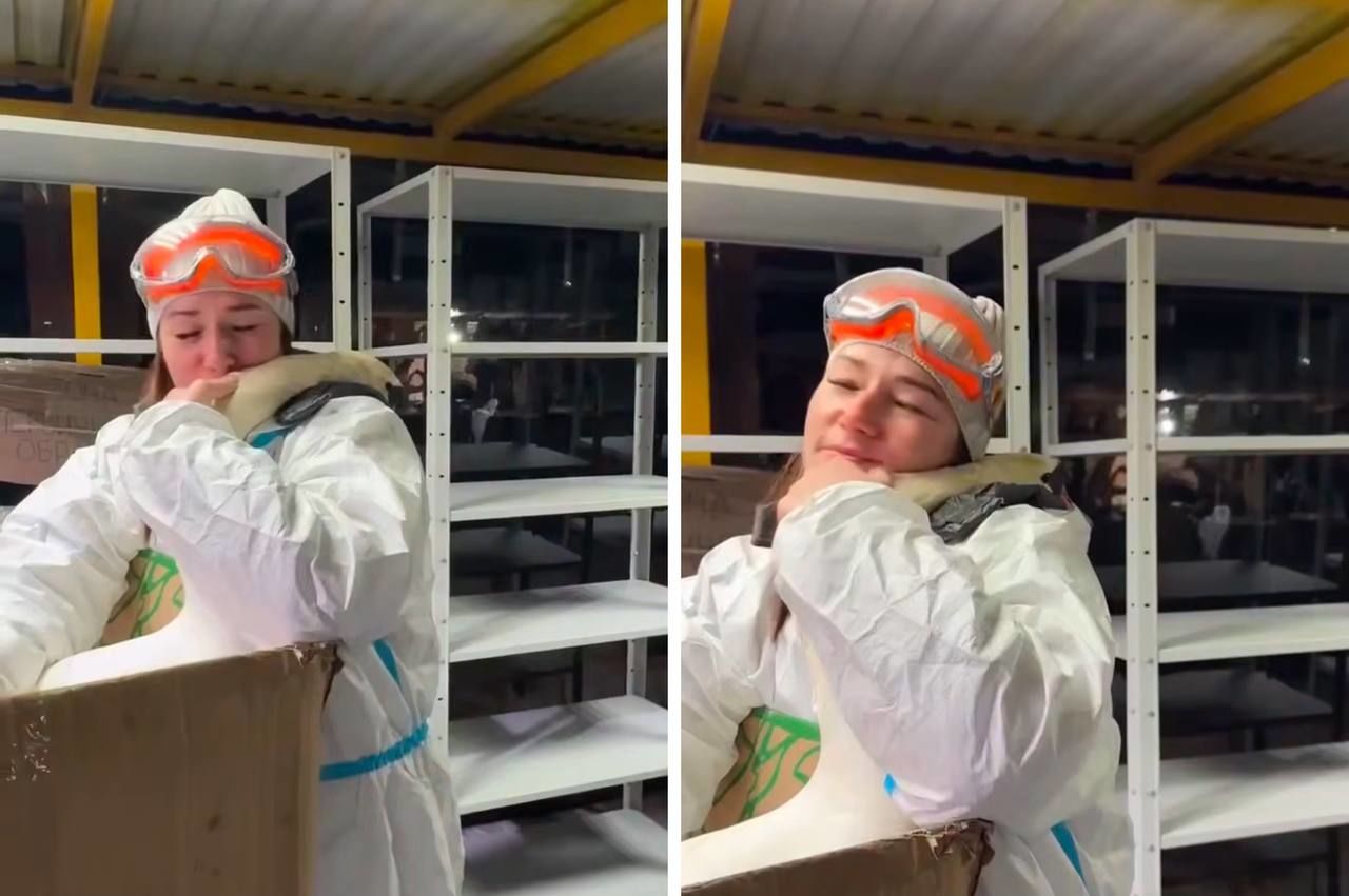 На кадрах видно, что птица прижалась к девушке. В ответ волонтерка расплакалась. В подписи к ролику Каваносян написал, что это «чрезвычайно благодарный пациент».