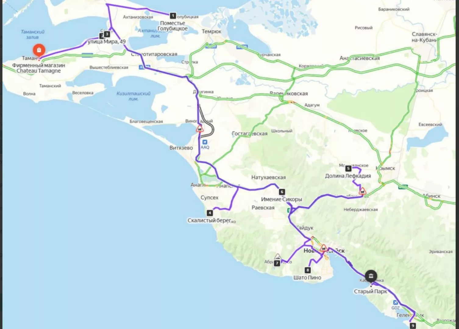 Путешественникам предлагают посетить центр энологии «Шато Тамань» на Таманском полуострове, «Поместье Голубицкое» в одноименной станице, музей-заповедник «Фанагория» в поселке Сенном, центр туризма «Абрау-Дюрсо» под Новоросийском и культурный центр «Старый парк» в Кабардинке.