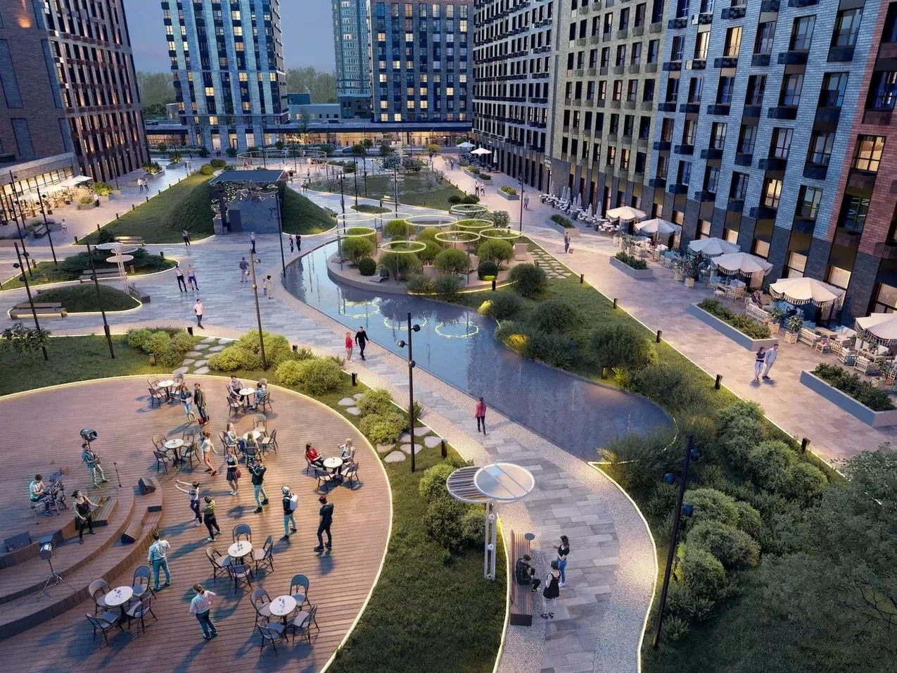 Благодаря расположению и внутреннему наполнению «Патрики» претендуют на звание «нового неисторического центра города». Здесь появится гранд-аллея с ресторанами, магазинами и прогулочными зонами, а также двухуровневый подземный паркинг и гостевая парковка по периметру комплекса на 3583 и 574 машиномест соответственно.