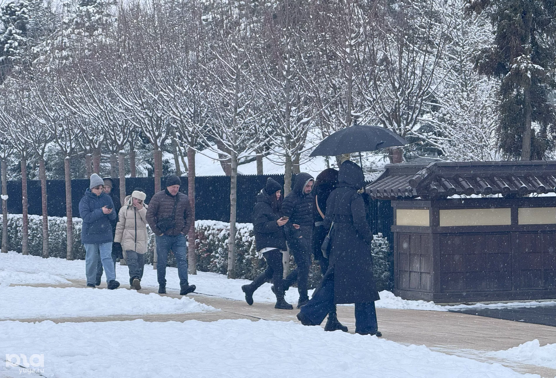В Краснодаре 16 января наступила зима. Собрали кадры из снежного парка «Краснодар»