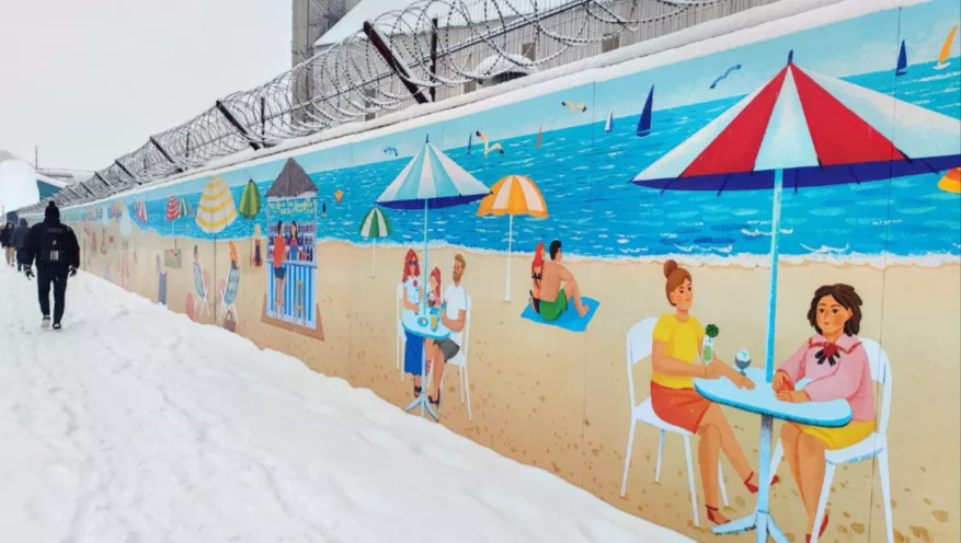 «Курортная романтика и лето». В Туапсе на бетонном заборе нарисовали 320-метровую картину