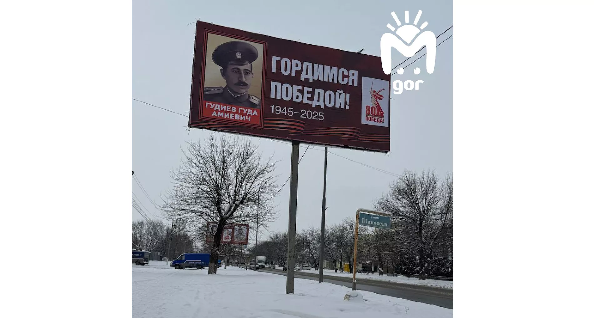26 февраля телеграм-канал Mash Gor сообщил, что в Ингушетии на одном из баннеров в честь 80-летия Победы изобразили ротмистра императорской армии Гуду Гудиева.