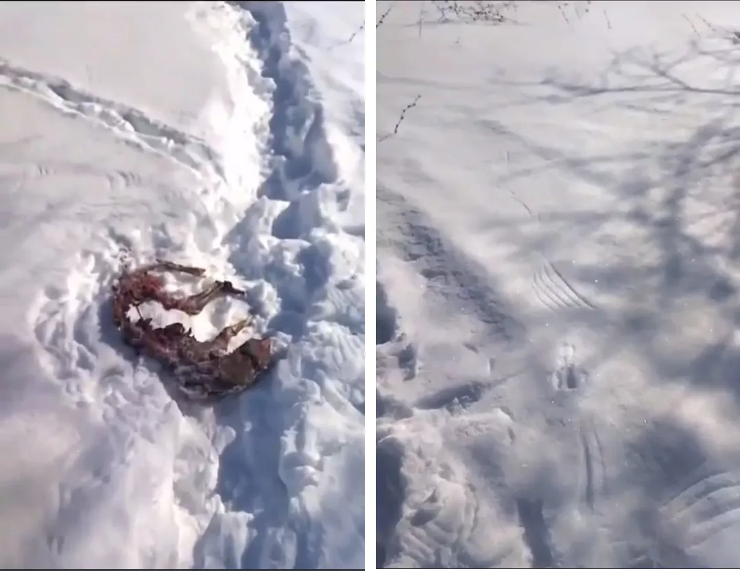 Зверь даже попал на запись камеры наружного наблюдения. Кроме того, на одном из видео можно разглядеть останки собаки или лисы, обглоданной хищником.