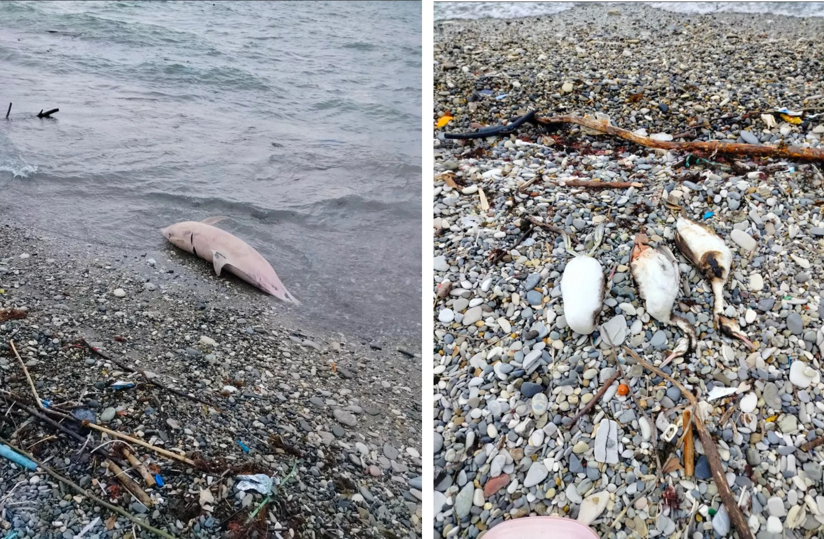 5 марта телеграм-канал «Мой Туапсе» опубликовал фотографии с Приморского пляжа. Автор сообщила, что на берегу моря увидела около 25 мертвых птиц и одного погибшего дельфина.