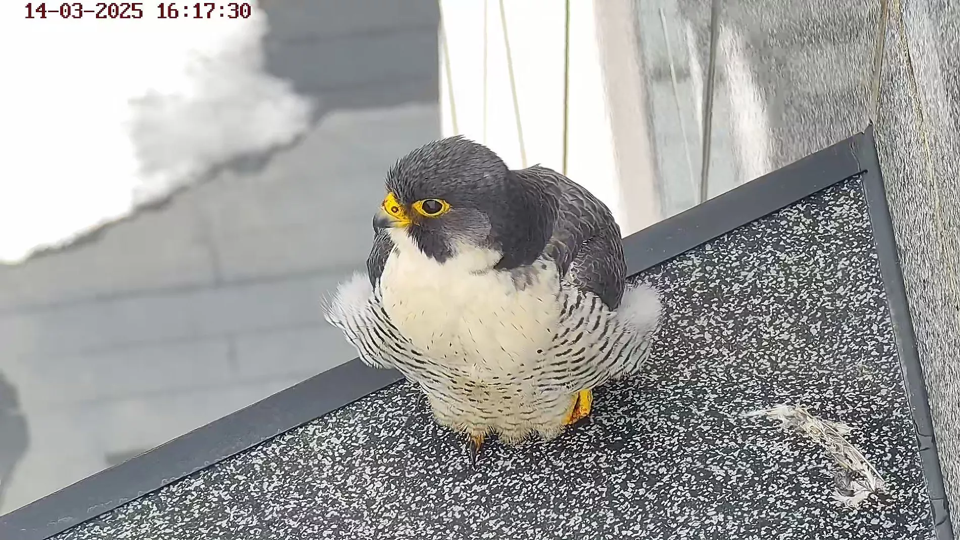 Камера, установленная над гнездовой площадкой, зафиксировала появление сапсанов 14 марта в 16:18. Как показывают наблюдения орнитологов, прилет соколов после зимовки — примета наступления весны и тепла.