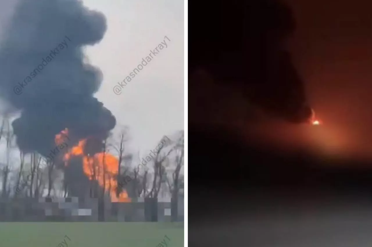Утром 19 марта краевой оперштаб сообщил, что беспилотники атаковали станицу Кавказскую, обломки упали на нефтебазу и повредили трубопровод между резервуарами.