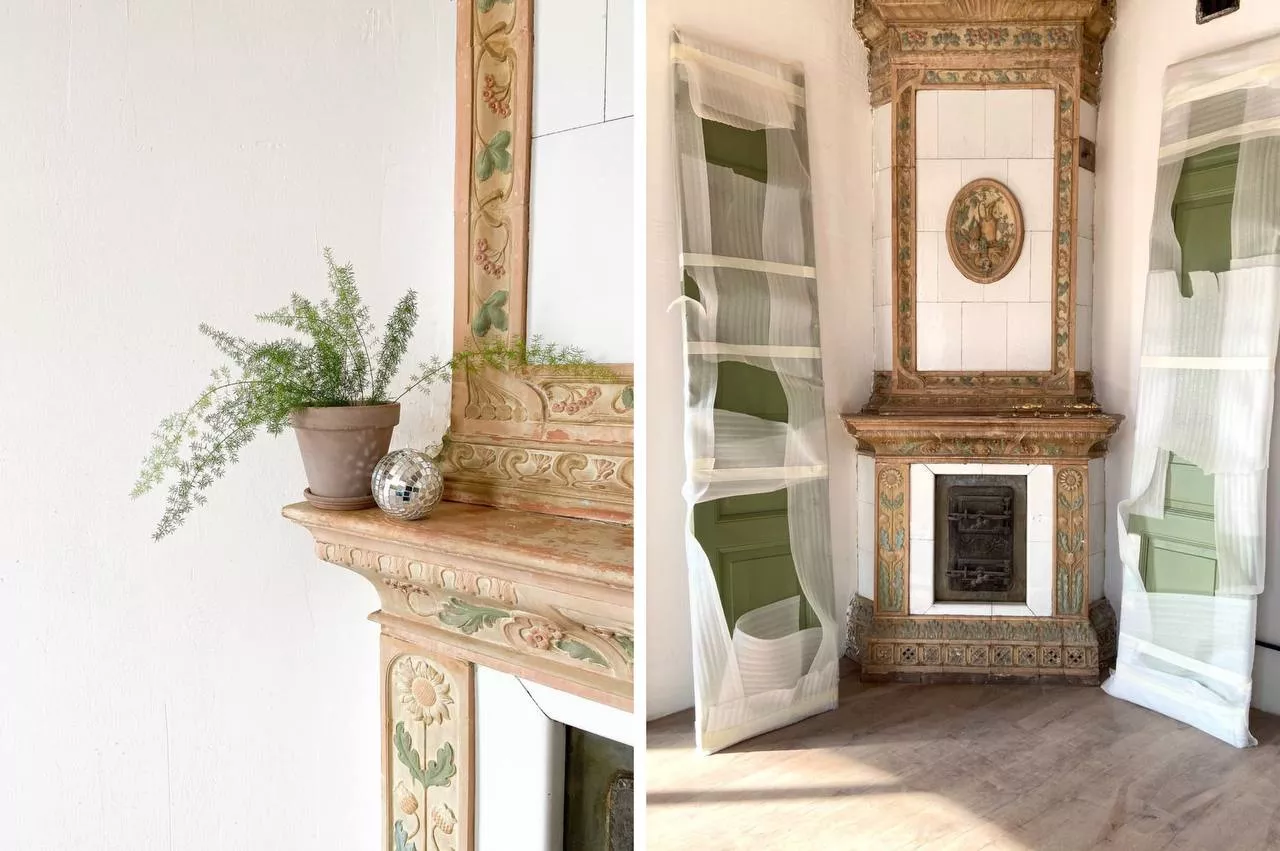 После пожара уцелела дореволюционная изразцовая печь. При этом сохранился лишь один участок лепнины. Деревянные двери отреставрировал проект «Том Сойер Фест».