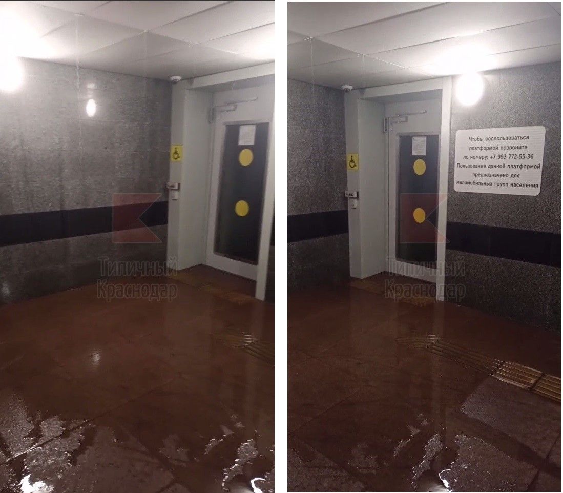 Краснодарцы засняли, как с потолка подземного перехода на улице Красных Партизан льется дождевая вода