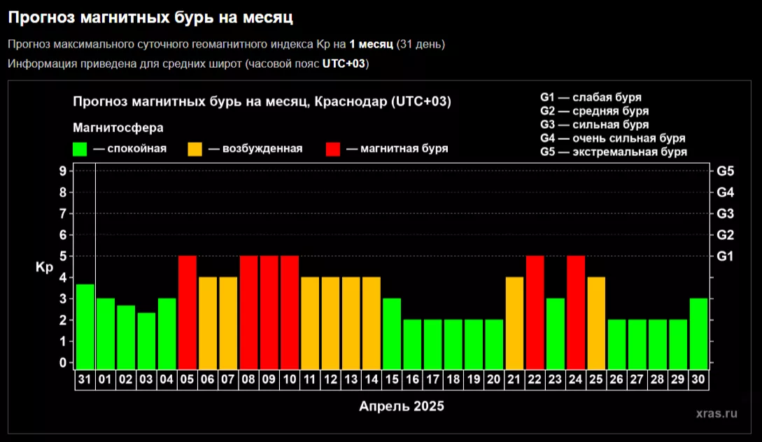 В Краснодарском крае в апреле снова ожидаются магнитные бури. Штормить будет шесть дней