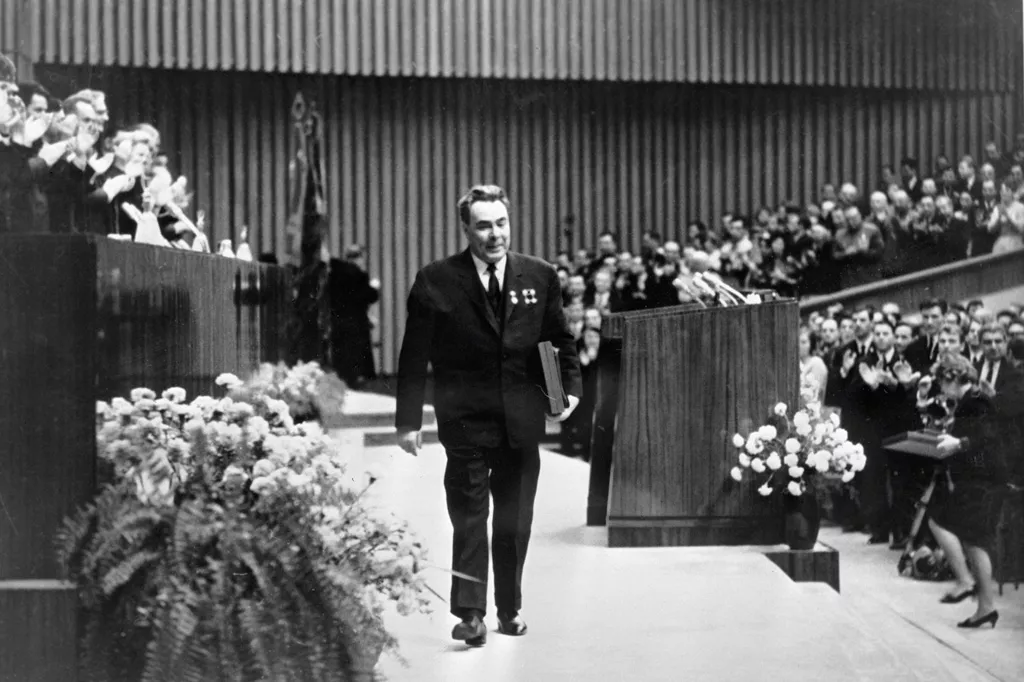 Л.И. Брежнев после выступления на Торжественном пленуме ЦК ВЛКСМ, посвящённом 50-летию Ленинского комсомола. Дворец съездов, 25 октября 1968 года © Фото доступно по лицензии Creative Commons Attribution-Share Alike 3.0 Unported
