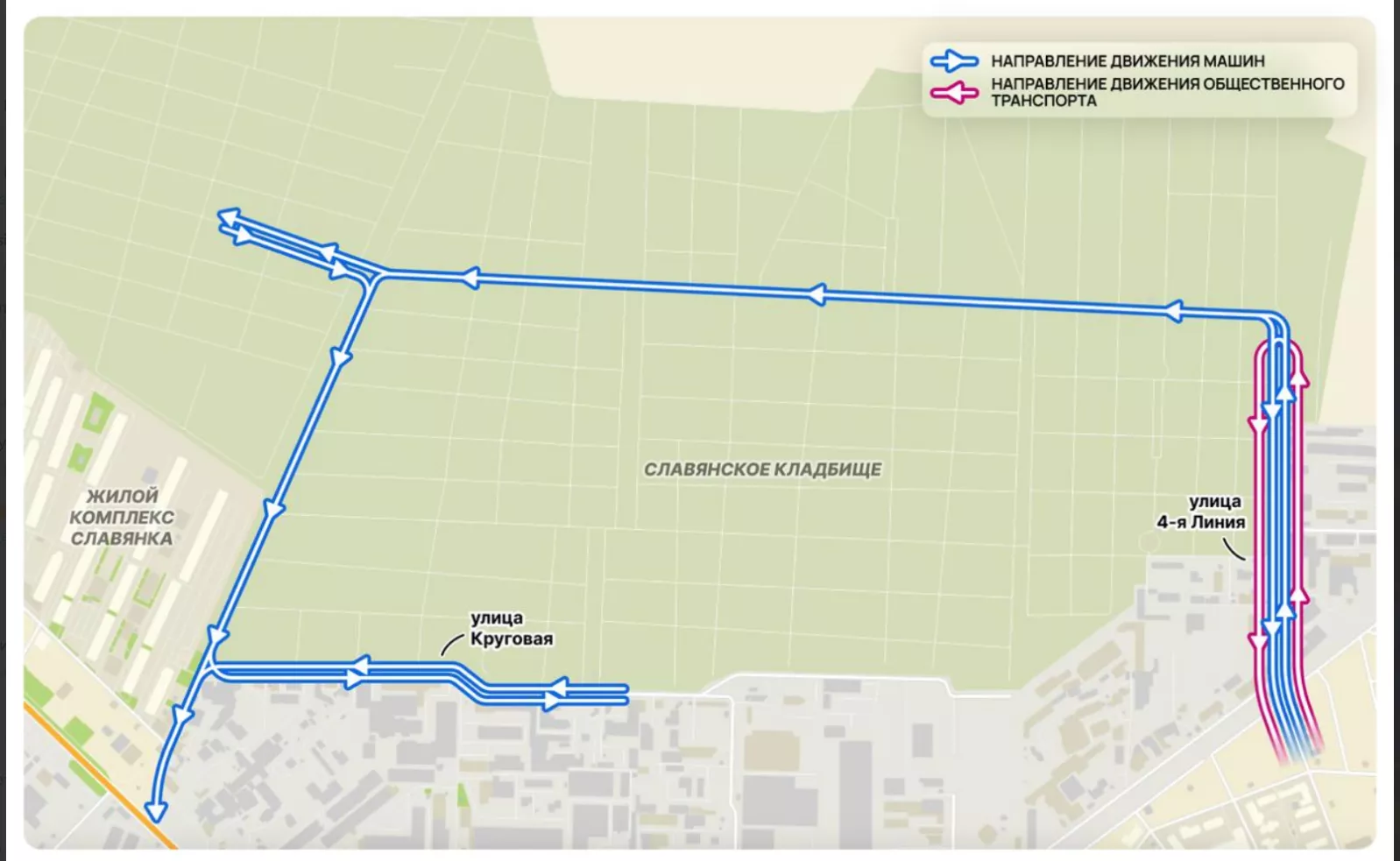 27 апреля телеграм-канал дептранса Краснодара сообщил, что до 29 апреля движение по Славянскому кладбищу будет односторонним. Также на территории запретили стоянку автомобилей.