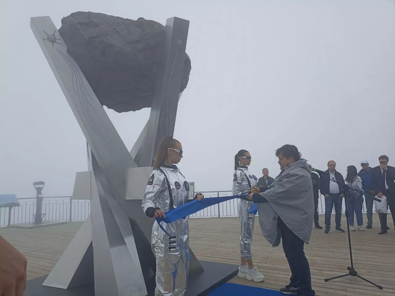 «Теперь каждый сможет подойти и прислонить руки на специальную панель, после чего раздастся сигнал, означающий, что камень впитал энергию и готов ее передать следующему человеку. С обратной стороны, гость может эту энергию получить. Таким образом будет происходить обмен энергией и положительными эмоциями. Именно такие чувства, как мне кажется, должны испытывать люди на высоте 2320 метров над уровнем моря, среди гор и неба», — поделился космонавт после церемонии открытия арт-инсталляции.