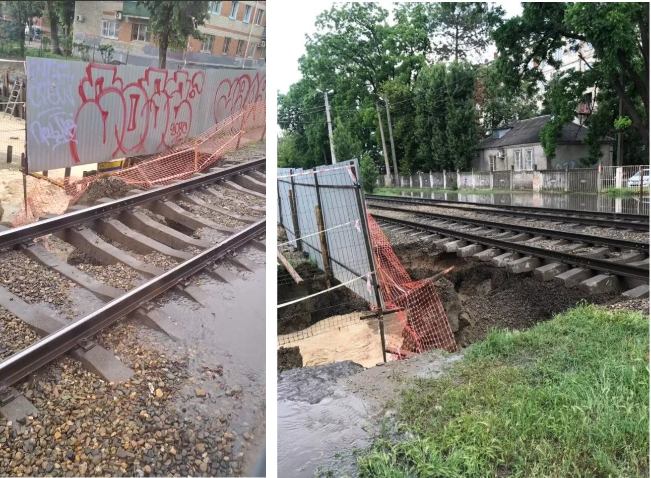 В Краснодаре по улице Клинической из-за дождя провалился грунт. Пять трамваев изменили маршруты