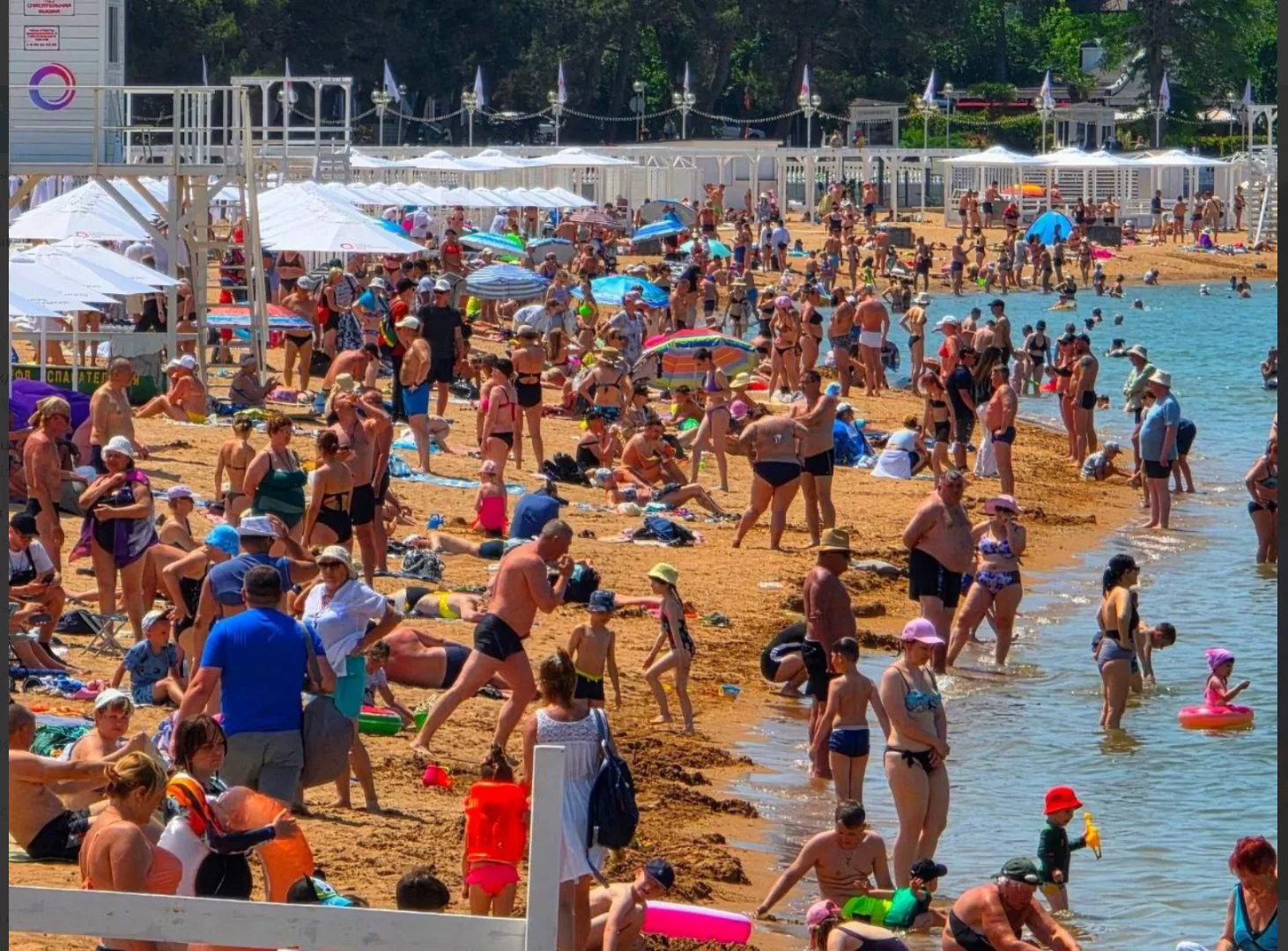 В Геленджике море прогрелось до 22 °C. На центральном пляже толпы туристов