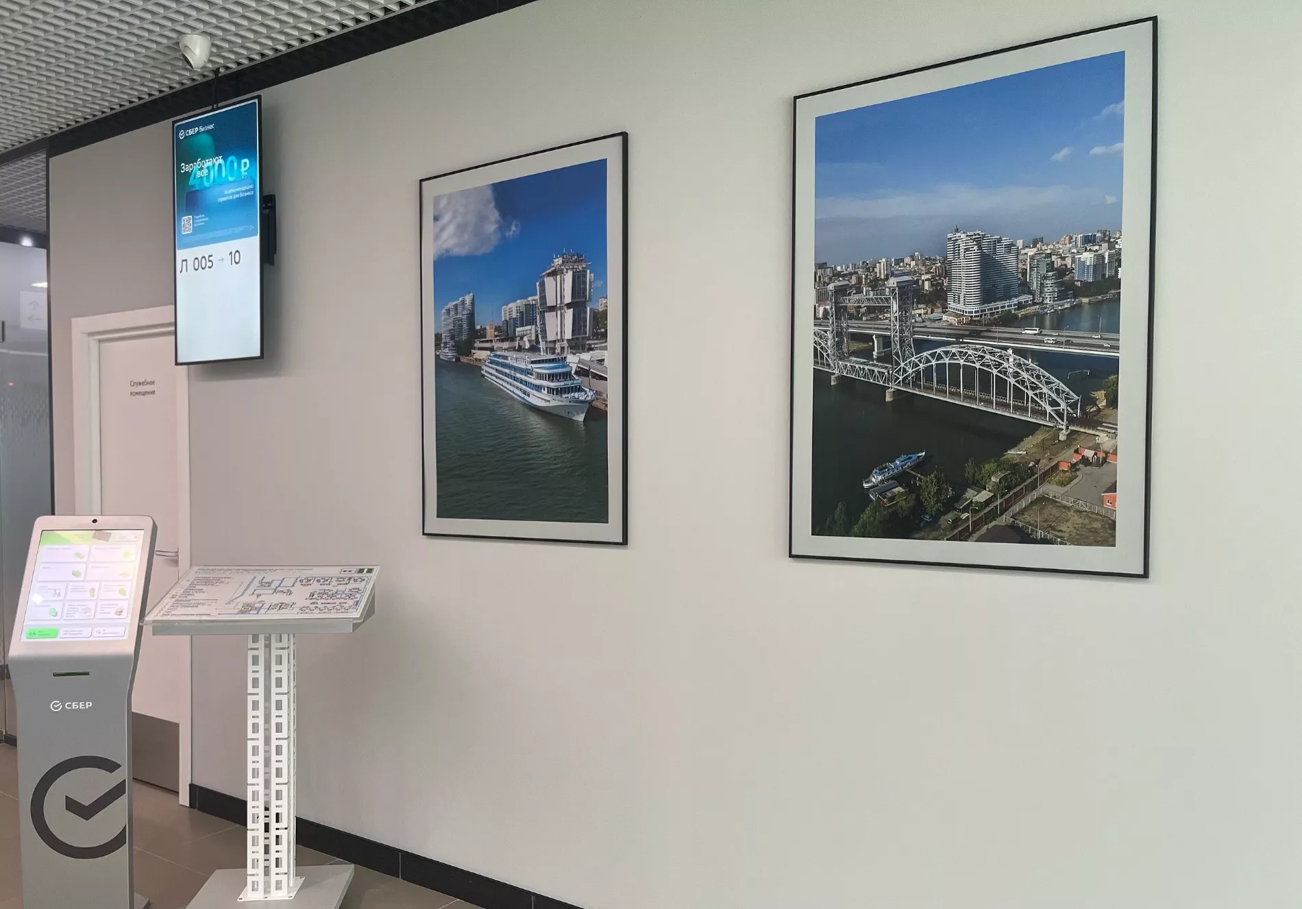 Интерьер в офисе украсили постерами с видами Дона, а для детей обустроили игровую зону. Пространство полностью адаптировали для маломобильных граждан.