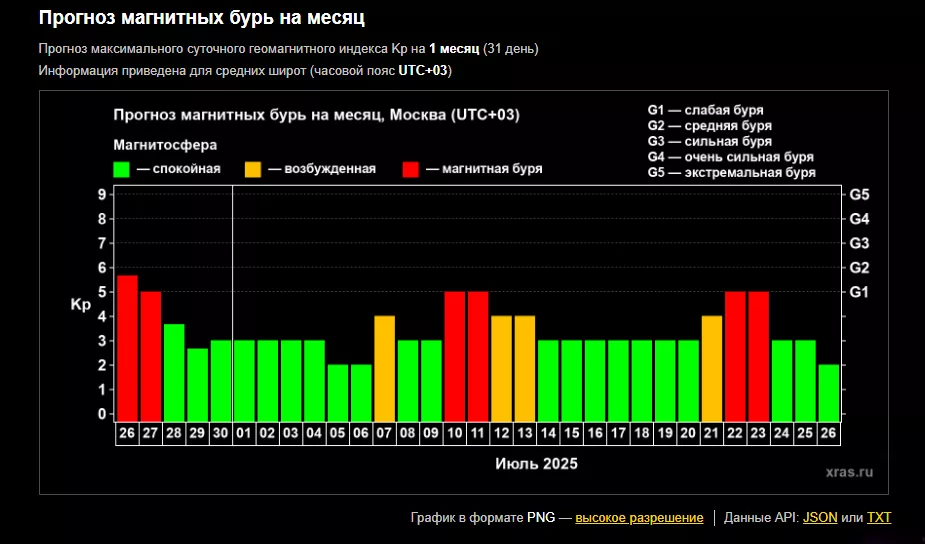 27 июня ожидается очередная магнитная буря. Также появился прогноз на июль