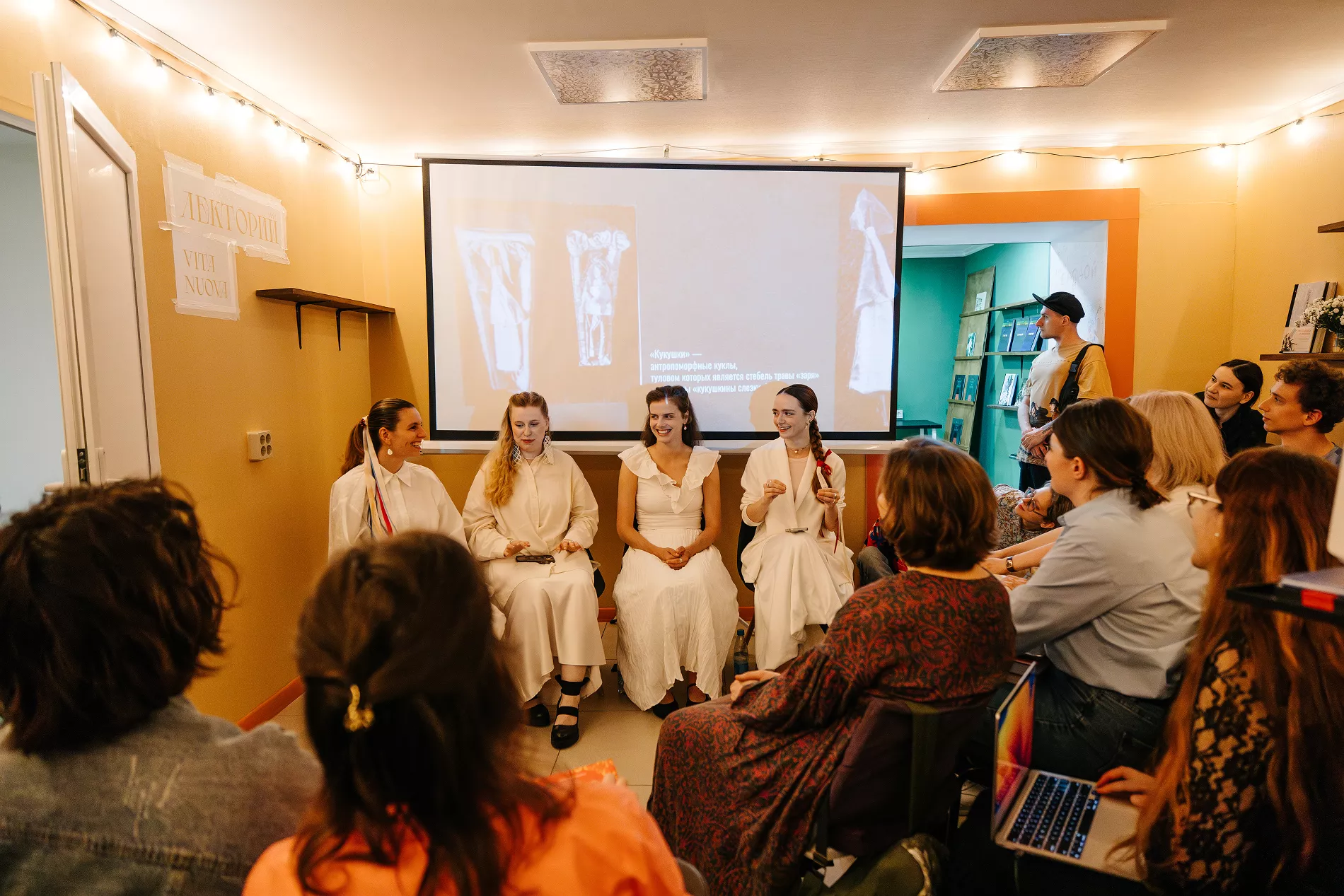 Днем в «Чарли» состоялась первая лекция образовательного проекта Vita Nuova — в дальнейшем они будут проходить 2-3 раза в неделю. В июле планируют обсудить роман «Лавр», поговорить о японской анимации и провести поэтическую лабораторию.
