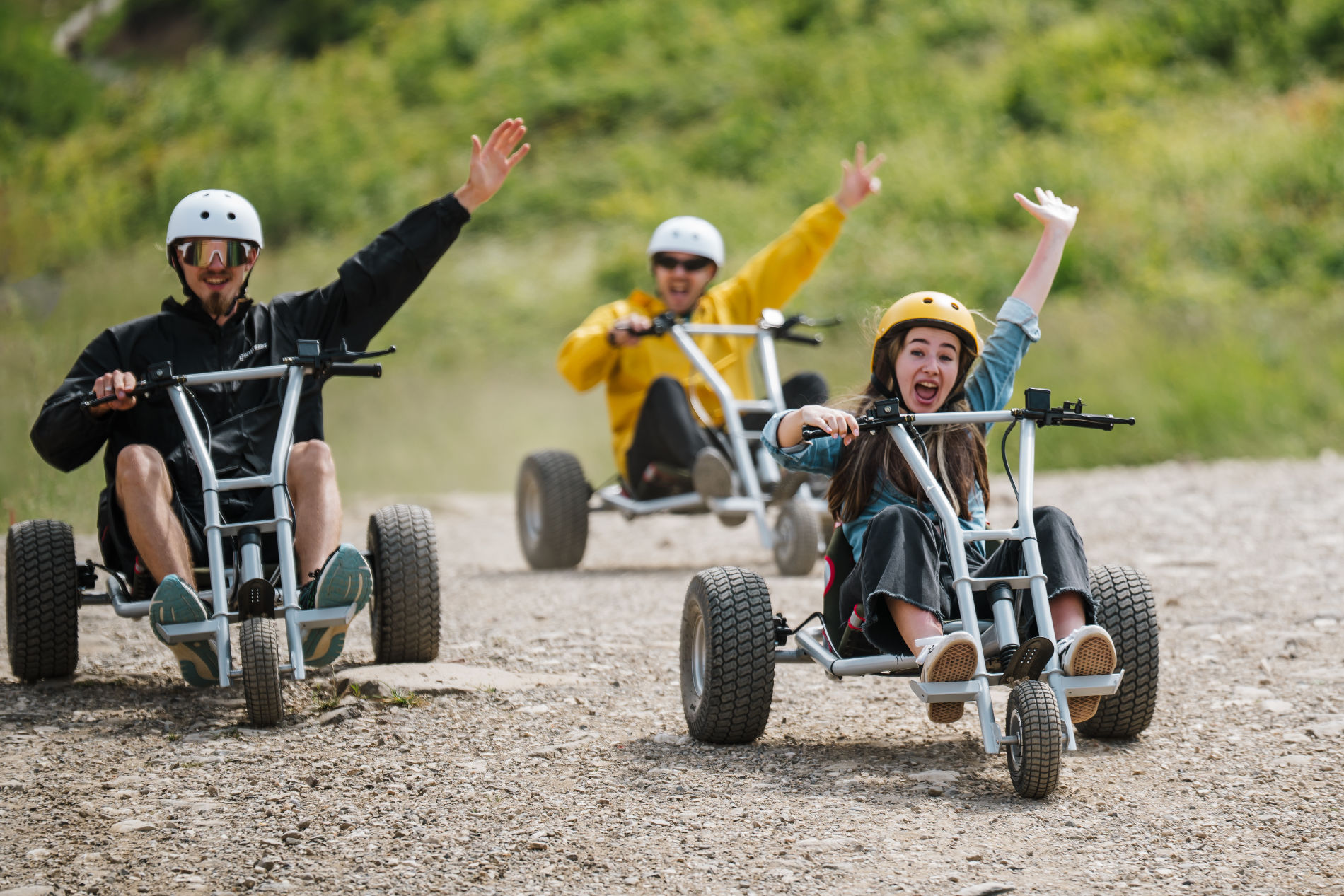 На Курорте Красная Поляна открылся новый летний аттракцион — маунтинкарты. Это специальный спортивный карт для скоростного спуска по горным трассам. Управляя им, можно почувствовать драйв и адреналин, а также насладиться живописными видами.
