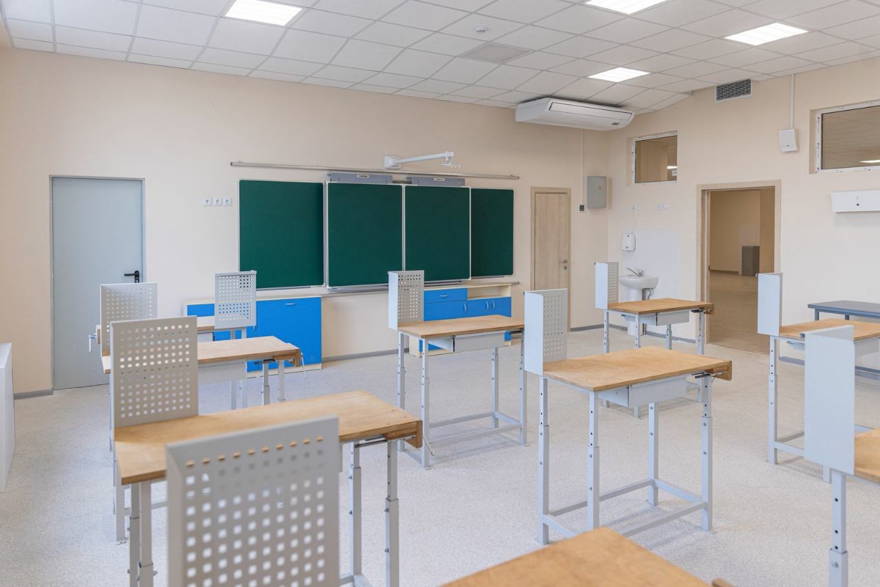 Трехэтажное здание площадью почти 32 тысячи кв. м вмещает не только учебные классы, но и кабинеты робототехники, лаборатории 3D-моделирования, библиотечно-информационный центр.