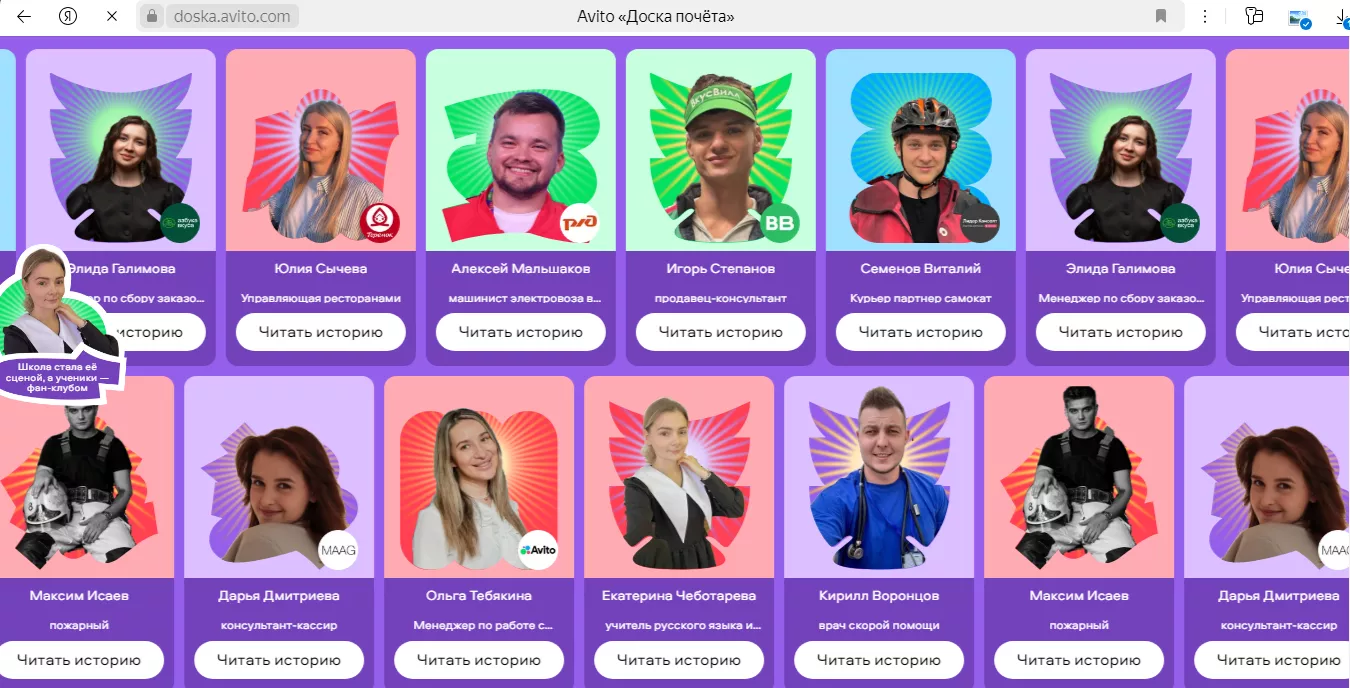 Авито Работа продолжает принимать новые истории на Доску почета. Организаторы приглашают всех желающих рассказать, как они исполнили мечту, обрели себя, помогли другому или нашли любовь благодаря работе.