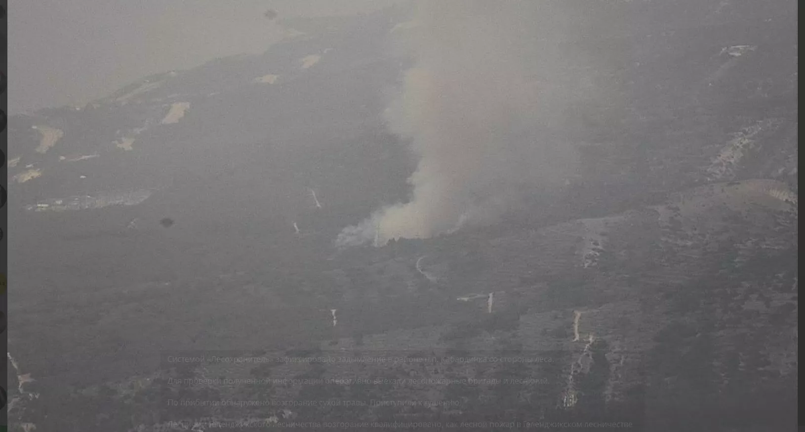 29 июля в 13:15 Краевой лесопожарный центр сообщил о задымление в районе поселка Кабардинка со стороны леса. Пожарные бригады зафиксировали возгорание сухой травы на площади 1 га и приступили к тушению.
