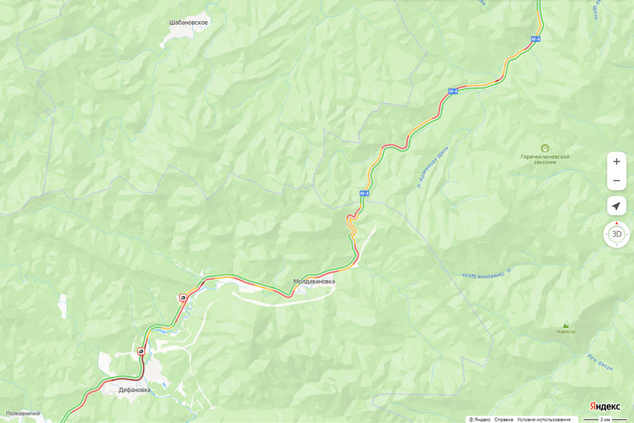 • Пробки на Молдаванском перевале днем 3 августа 2025 г. © Скриншот сайта Yamdex.ru/maps
