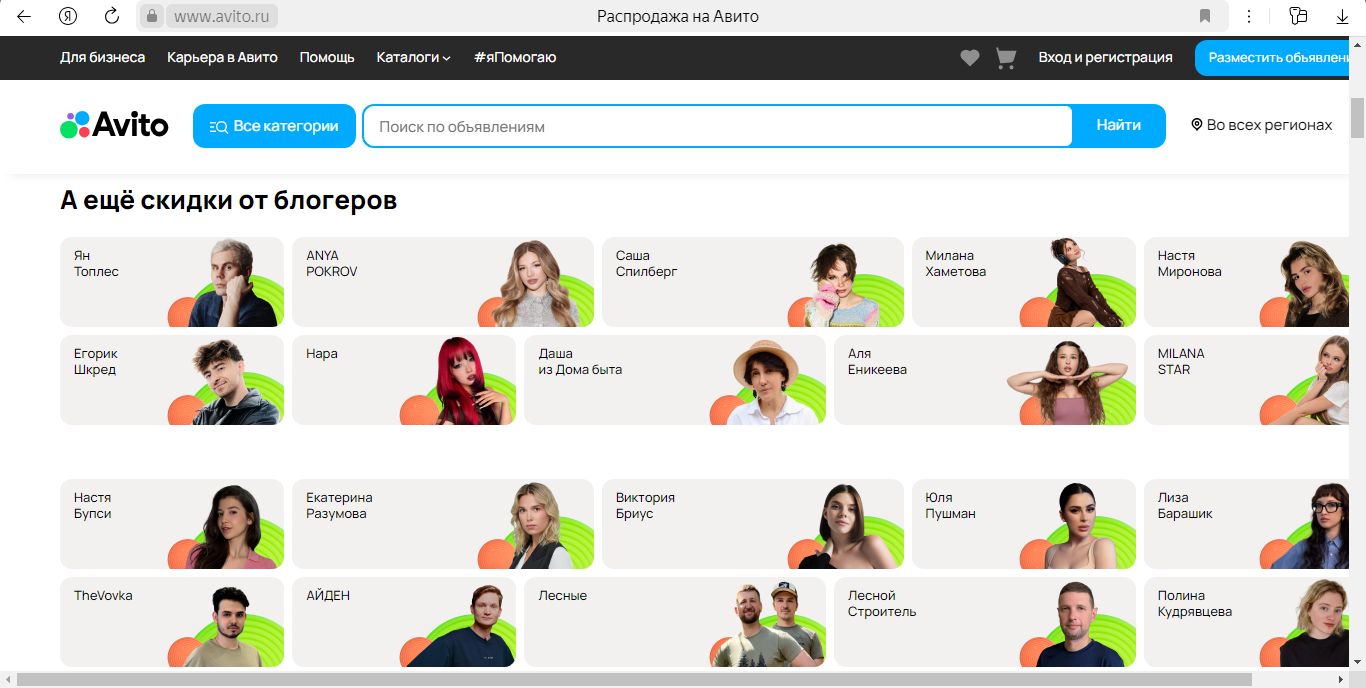 С 11 августа на Авито будут появляться личные вещи популярных блогеров: Яна Топлес, Ани Покров, Саши Спилберг, Миланы Хаметовой, Али Аникеевой, Миланы Стар и других