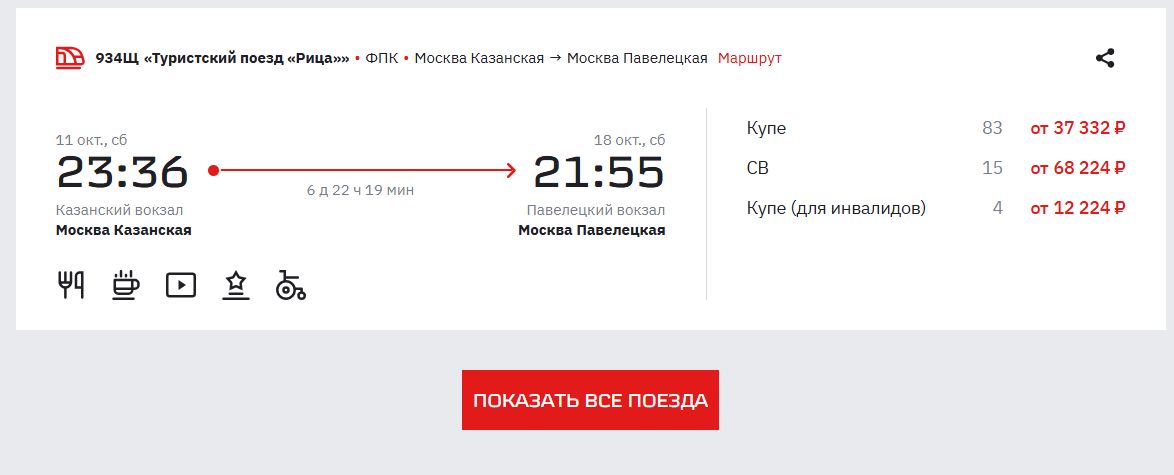 РЖД открыли продажу билетов на туристический поезд «Рица». Он совершит только один рейс, проследовав через Новороссийск, Гагру, Сухум, Сочи и Ростов-на-Дону.