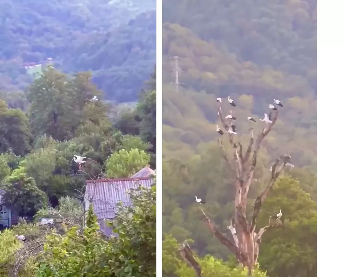12 августа телеграм-канал Сочинского географического общества опубликовал видео, снятое жителями сел Галицыно и Лесное в Адлерском районе. На ролике видно редких для региона белых аистов.