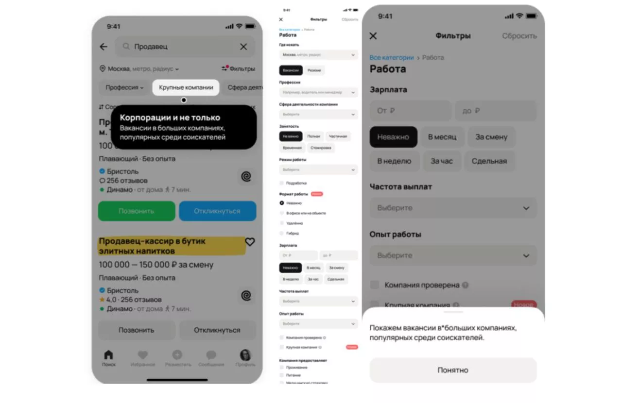 На Авито Работе появился фильтр «Крупные компании». Он выделяет вакансий от ведущих работодателей