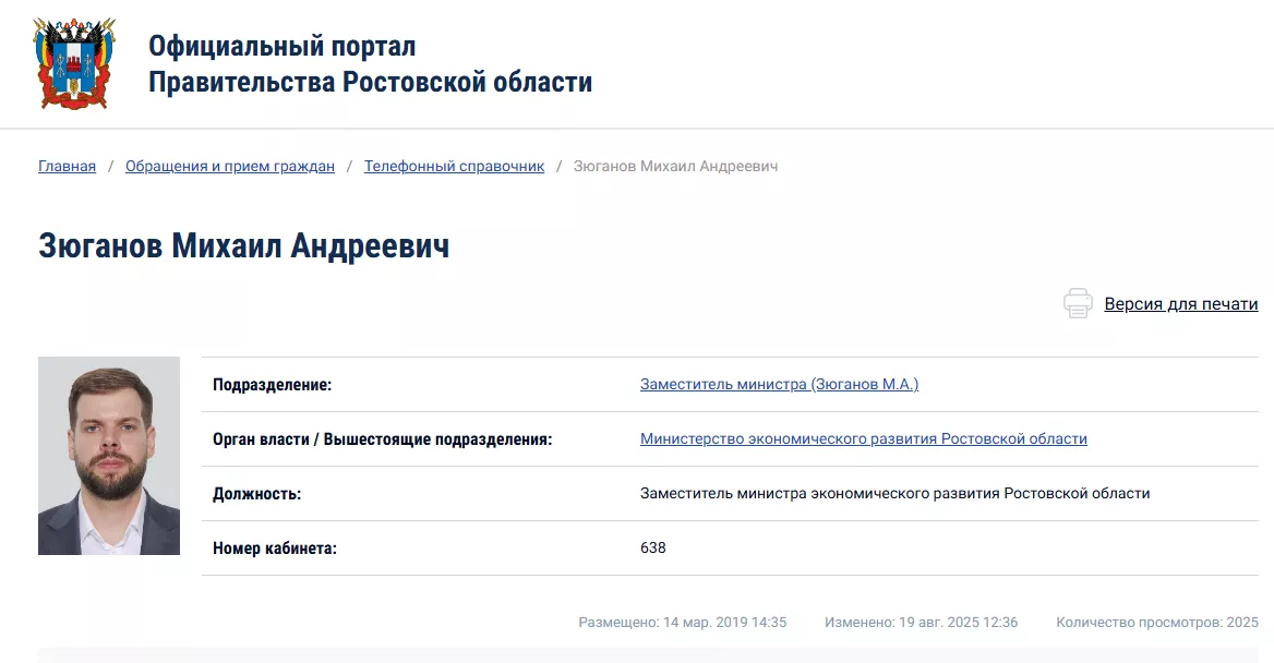 19 августа на сайте правительства Ростовской области появилась информация, что одним из заместителей министра экономики региона стал Михаил Зюганов — внук главы КПРФ Геннадия Зюганова. Он будет курировать реализацию нацпроектов и укреплять связи с высшими органами власти.