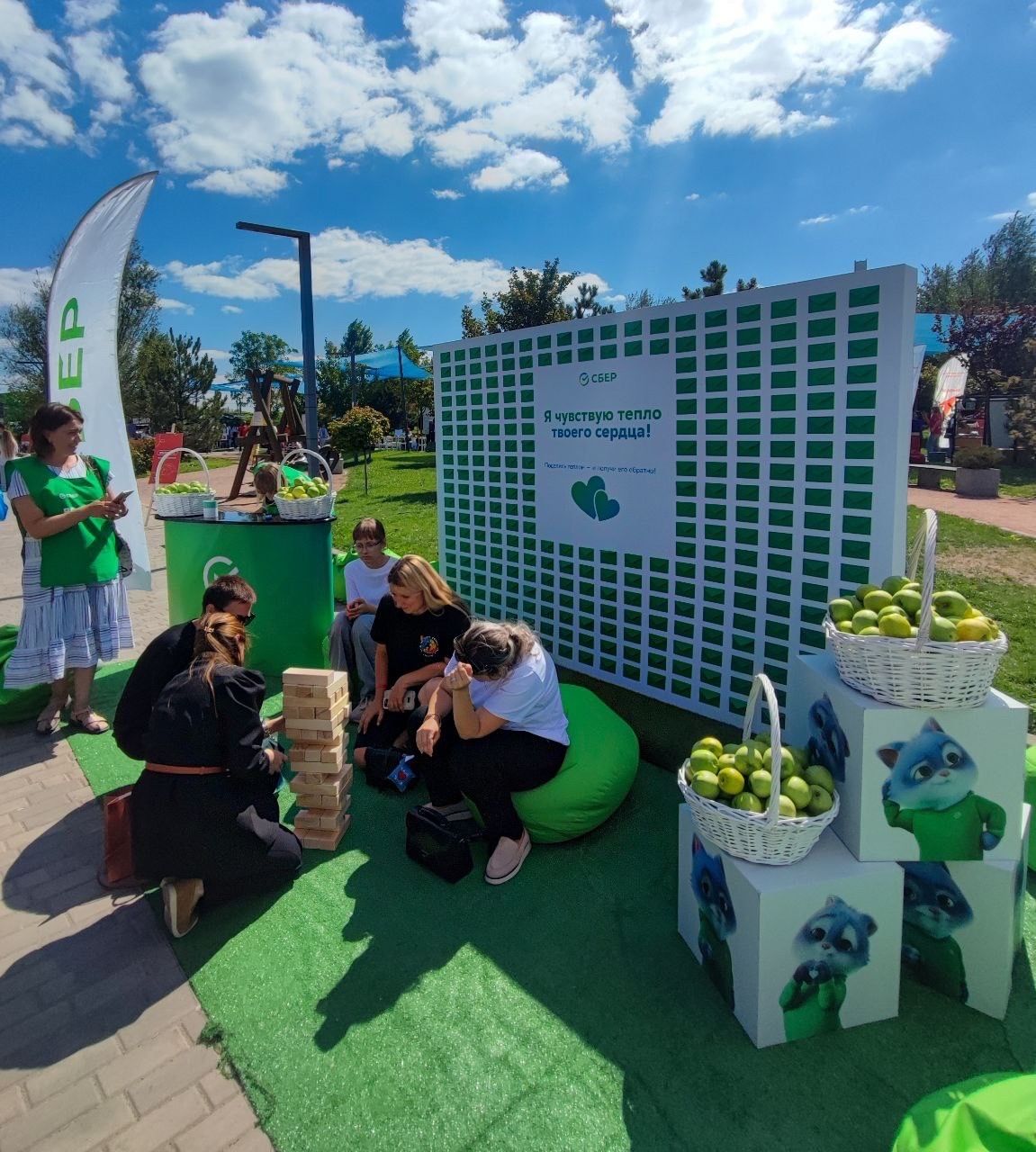 На площадке, которую организовал Сбер, работала зона с активностями: любой желающий мог оставить доброе пожелание незнакомцу и получить такое же послание в ответ, сыграть в дженгу или проверить чувство равновесия на баланс-борде. Также представители банка рассказали молодым людям о стажировках и образовательных программах в финансовой сфере.