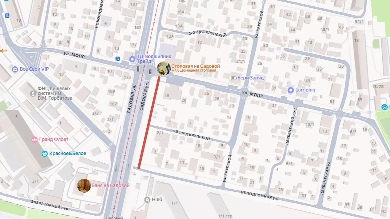 15 сентября пресс-служба администрации Краснодара сообщила, что до 30 декабря 2025 года движение по улице Садовой от МОПРа до Ипподромной будет ограничено.