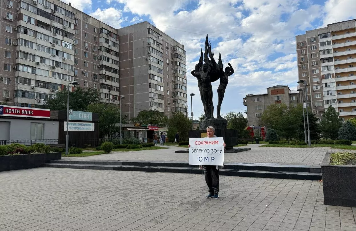 5 октября женщина вышла к мемориалу «Чернобыльцам Кубани» с плакатом «Сохраним зеленую зону ЮМР». По словам жителей района, они собираются устраивать одиночные пикеты каждый день.