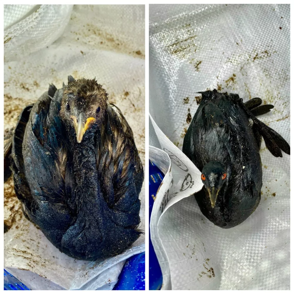 Помимо этого, в штаб поступили две замазученные птицы. Волонтеры заявили, что таких грязных особей они не встречали с апреля. Пострадавших птиц выхаживают в реабилитационном центре.