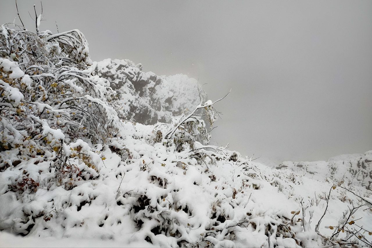 На Курорте Красная Поляна на высоте свыше 2200 метров над уровнем моря, включая уникальную зону Цирк-2, зафиксирован первый в текущем сезоне снегопад.