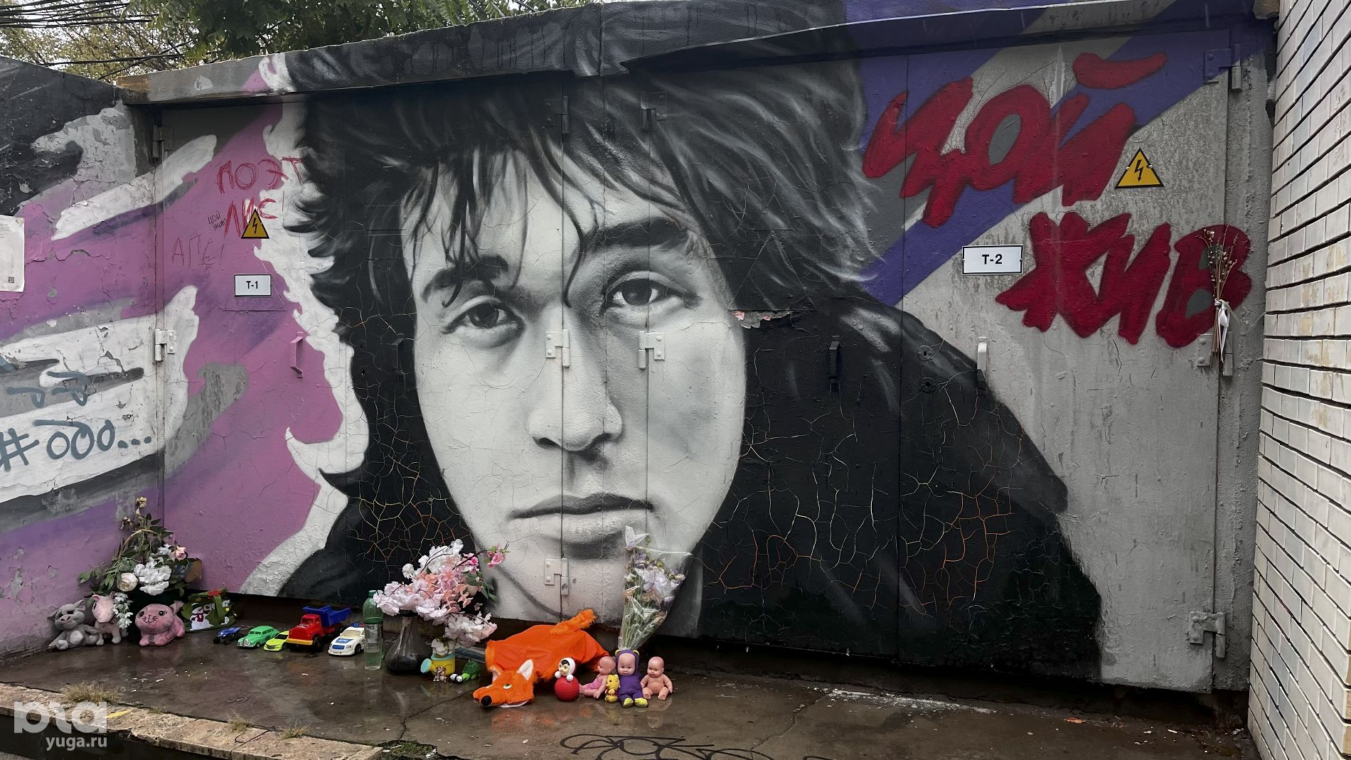 10 октября Юга.ру заметили стихийный мемориал на краснодарском Арбате возле граффити с портретом Виктора Цоя. Жители принесли к стене мягкие игрушки и букеты цветов.