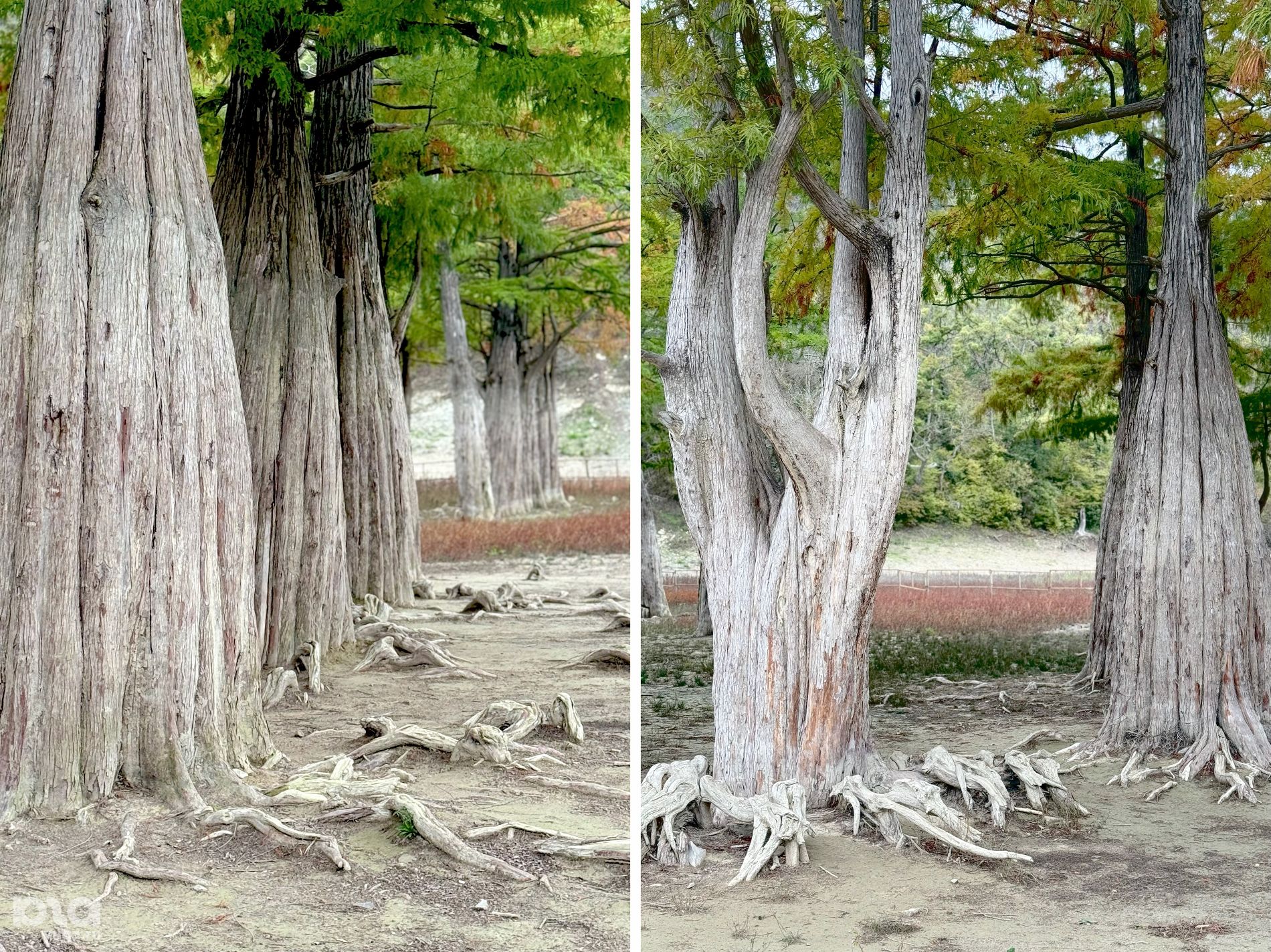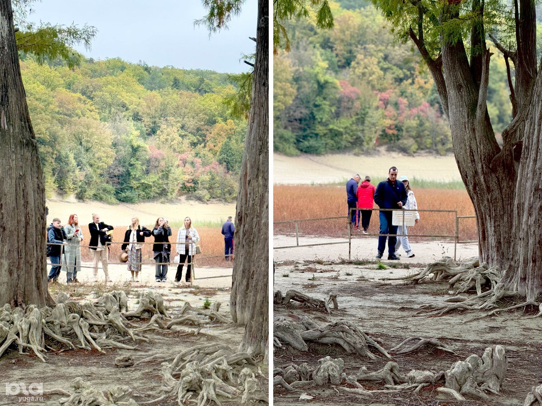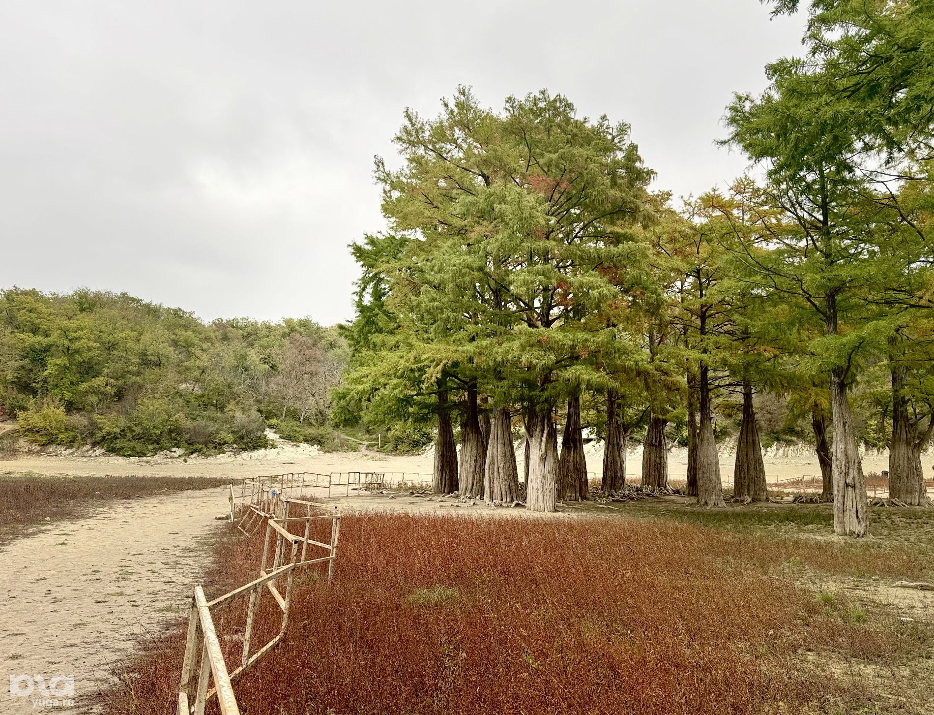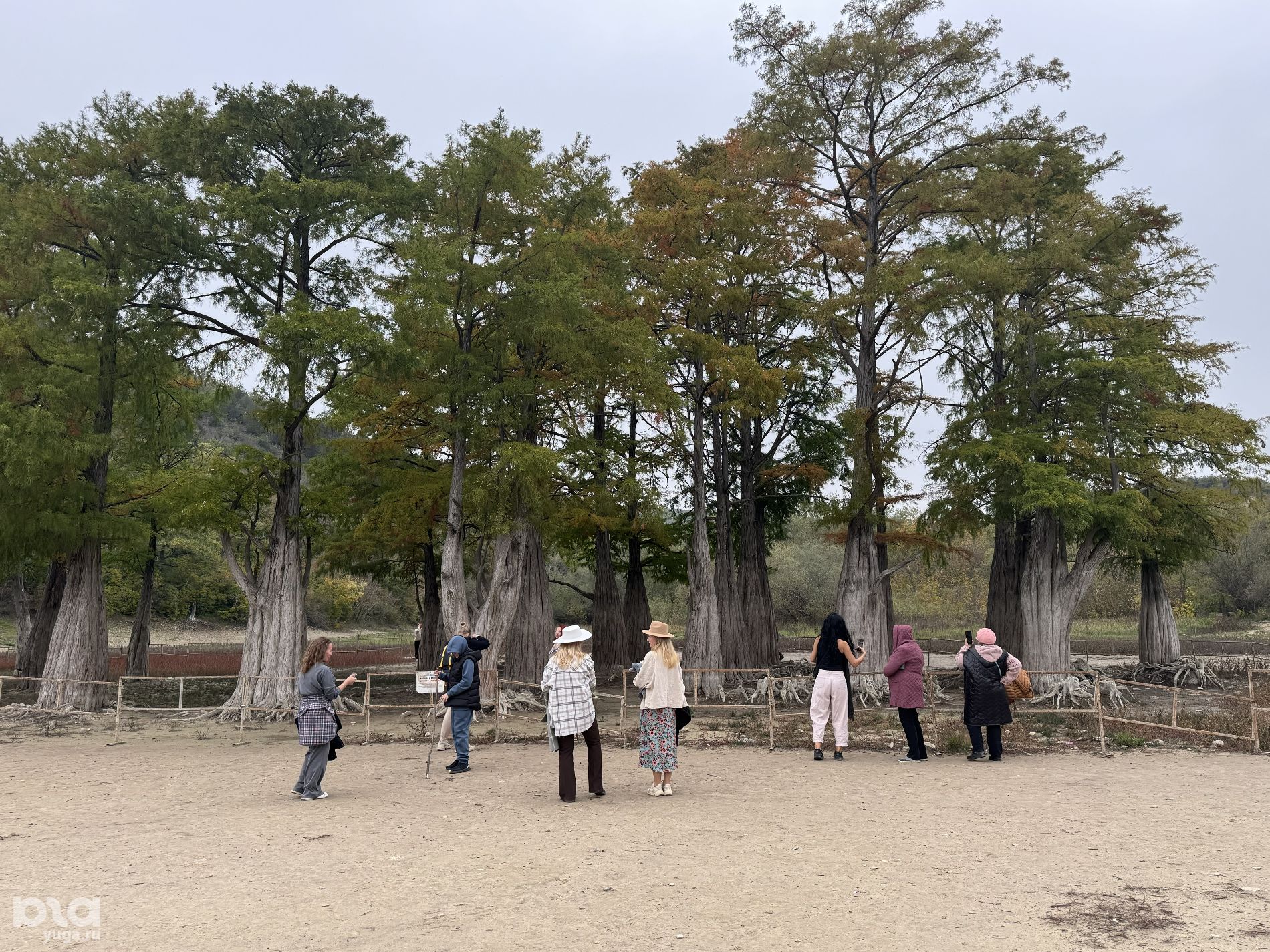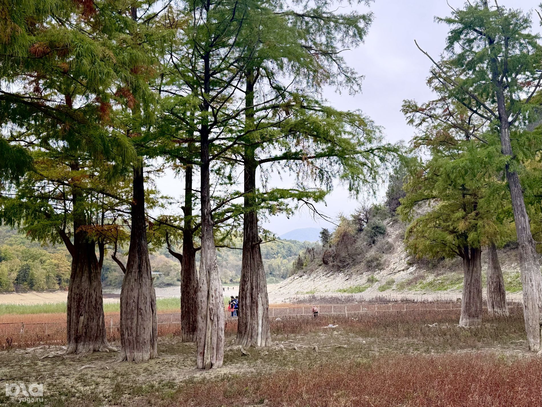 Озеро сильно обмелело, подойти к кипарисам теперь можно пешком и пройти вокруг ограждения. Напомним, что деревья огородили, так как туристы подходили близко к корням, взбирались на них и даже залезали на ветки. Экологи и активисты неоднократно напоминали, что это вредит деревьям.