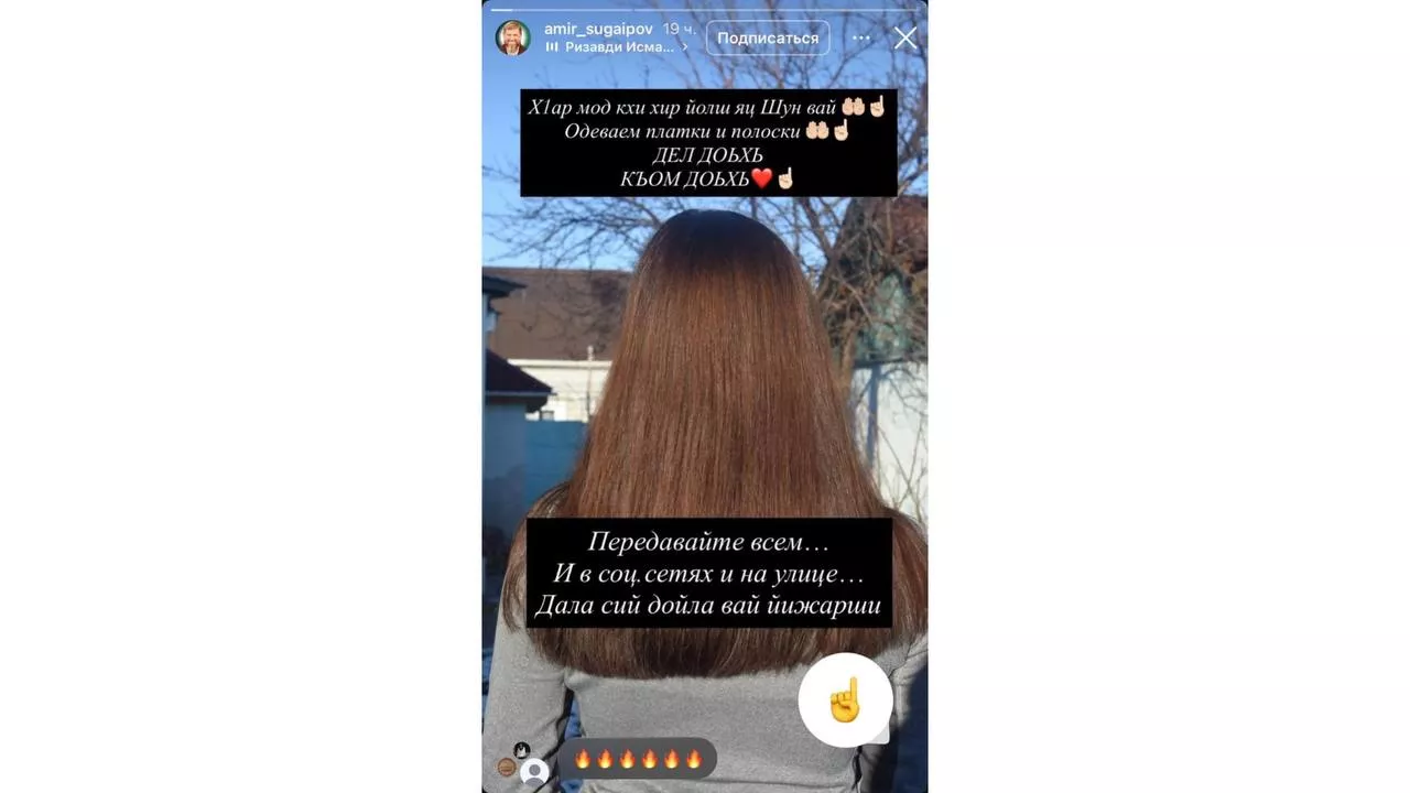 23 октября издание «Чечня Сегодня» сообщило, что помощник главы Чечни Амир Сугаипов в соцсетях призвал чеченских женщин носить платки.